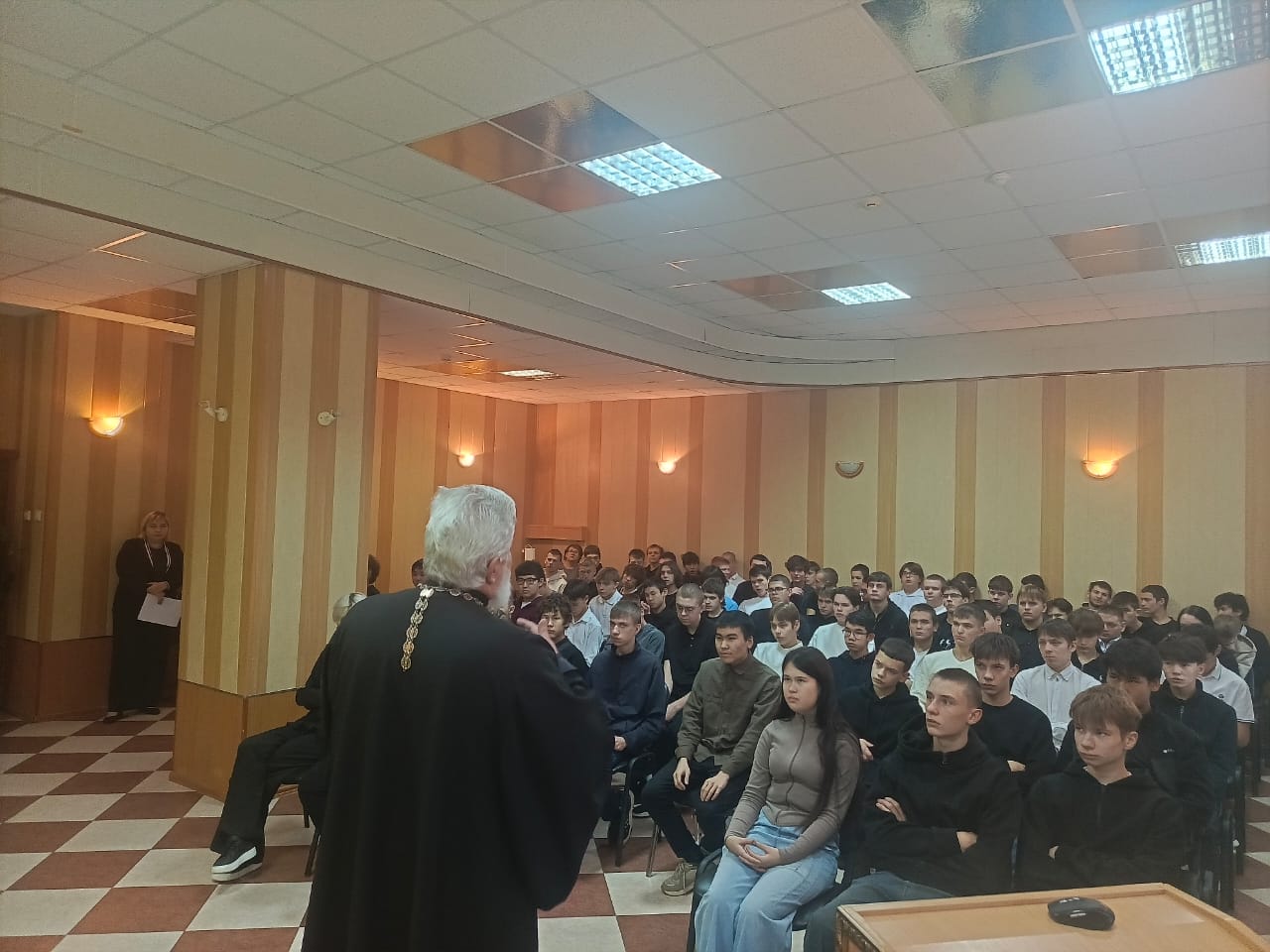 ОРСК. 28 октября 2025 г. В рамках проекта «7 уроков жизни» руководитель епархиального отдела по церковной благотворительности и социальному служению протоиерей Вячеслав Кочкин провёл лекцию для студентов-первокурсников Орского машиностроительного колледжа.