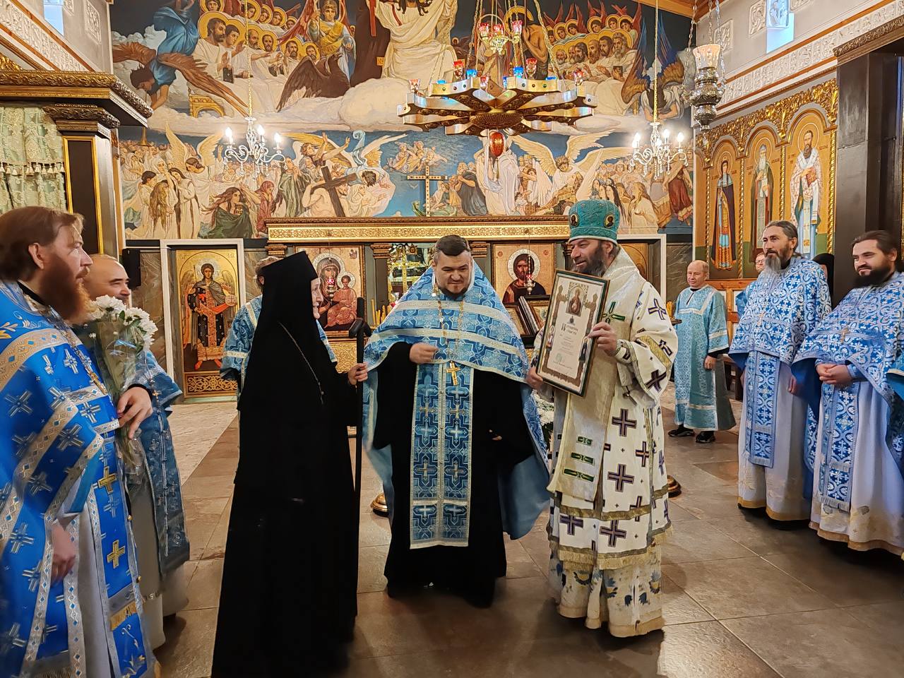 Затем Преосвященнейший Ириней поздравил всех с престольным праздником: