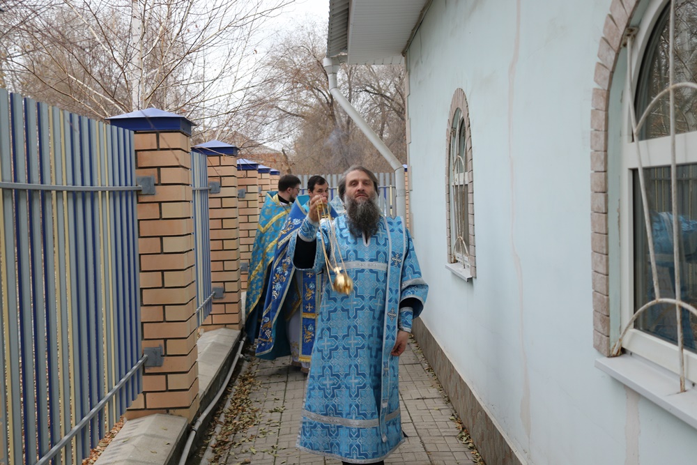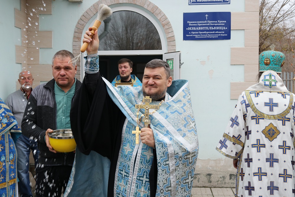 Его Преосвященству сослужили секретарь епархии протоиерей Александр Куцов, настоятель храма священник Игорь Гогалюк, благочинный Новотроицкого округа протоиерей Сергий Кваша, настоятель Казанского храма Орска священник Максим Бражников, архидиакон Викентий (Геницэ). На крестном ходе к освященному собору присоединился также священник Вячеслав Коротков.