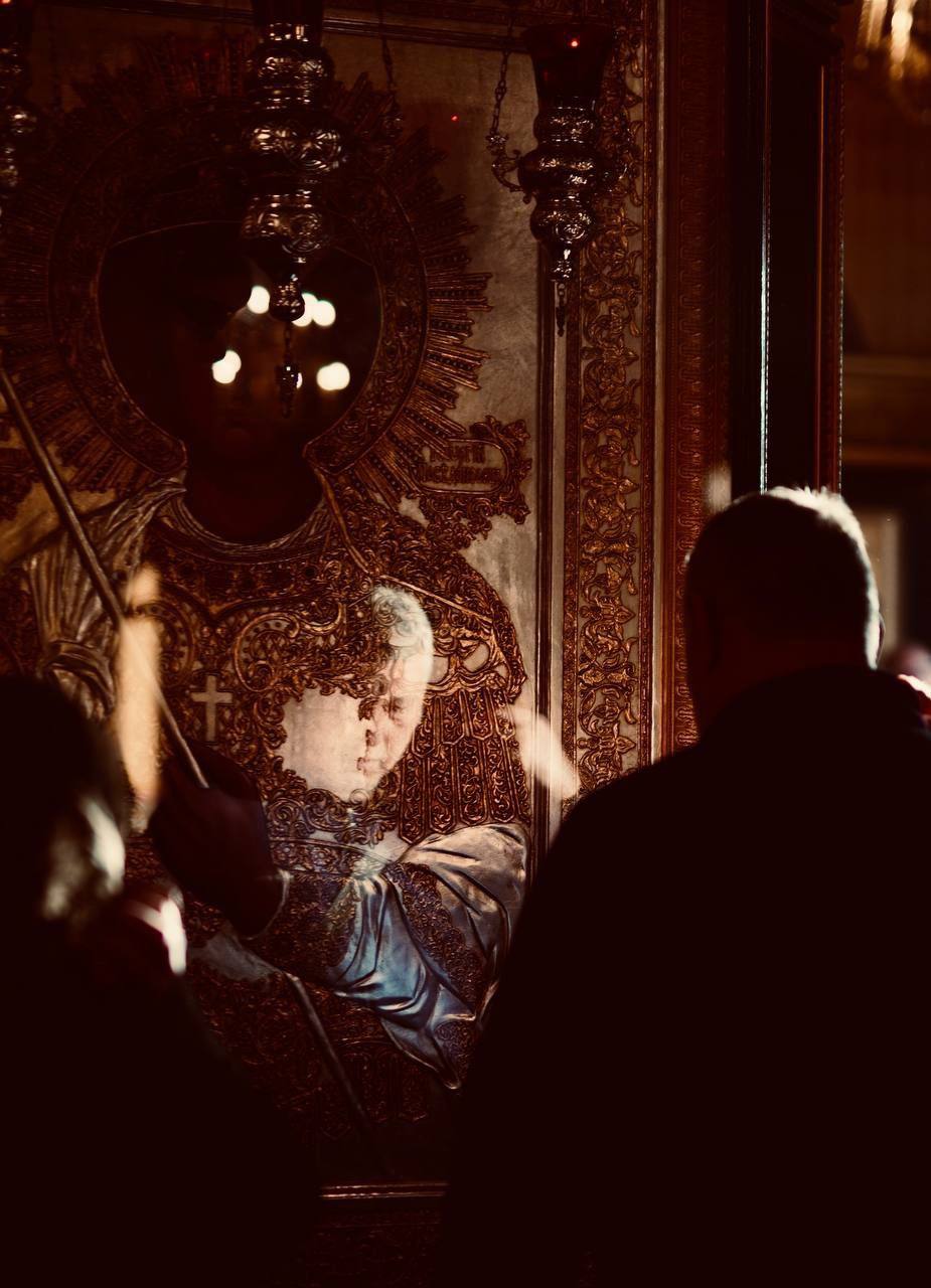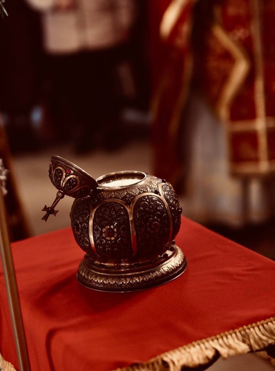 Для поклонения из алтаря был вынесен ковчежец с частицей мощей святого.