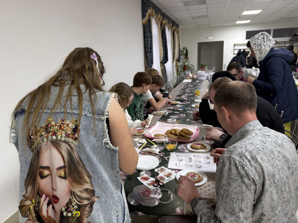 Затем участников ждала тёплая творческая часть. Каждый желающий смог украсить праздничное печенье для своей мамы. Основу для этих добрых сюрпризов приготовили ребята из воскресной школы — их участие придало мероприятию особую семейную атмосферу.