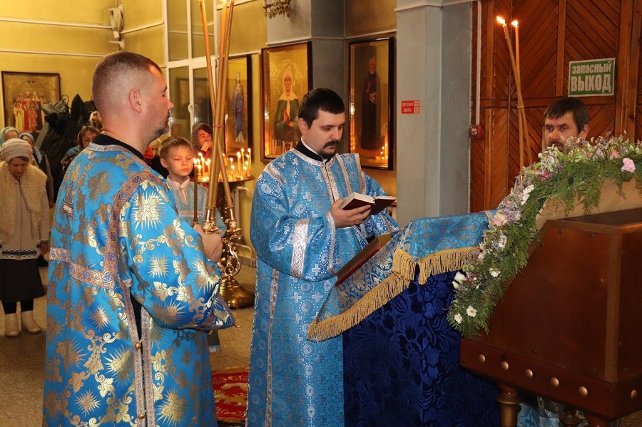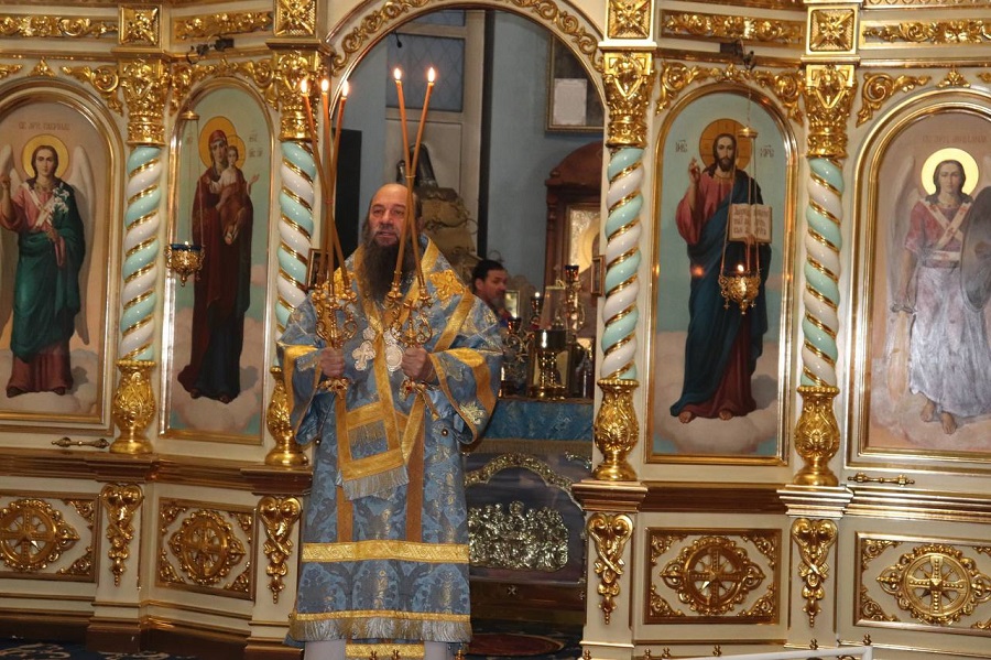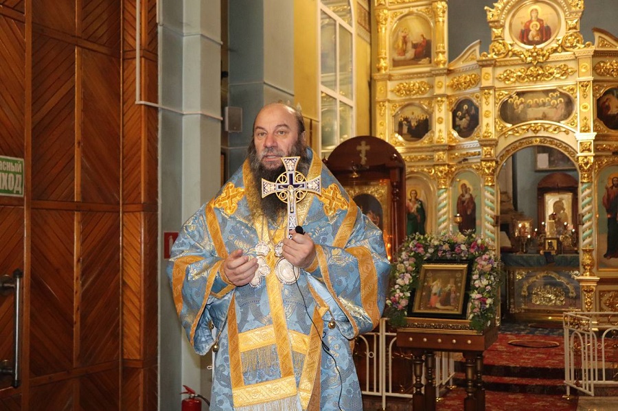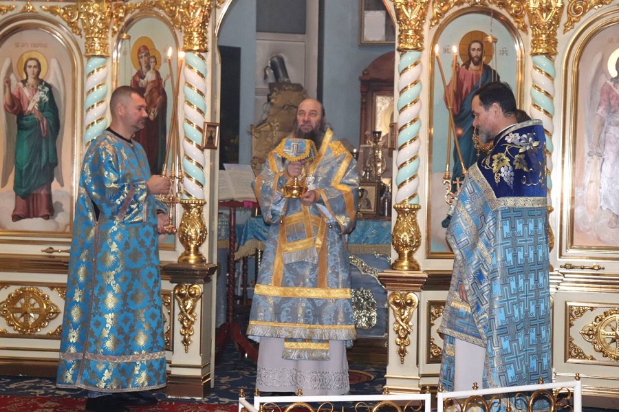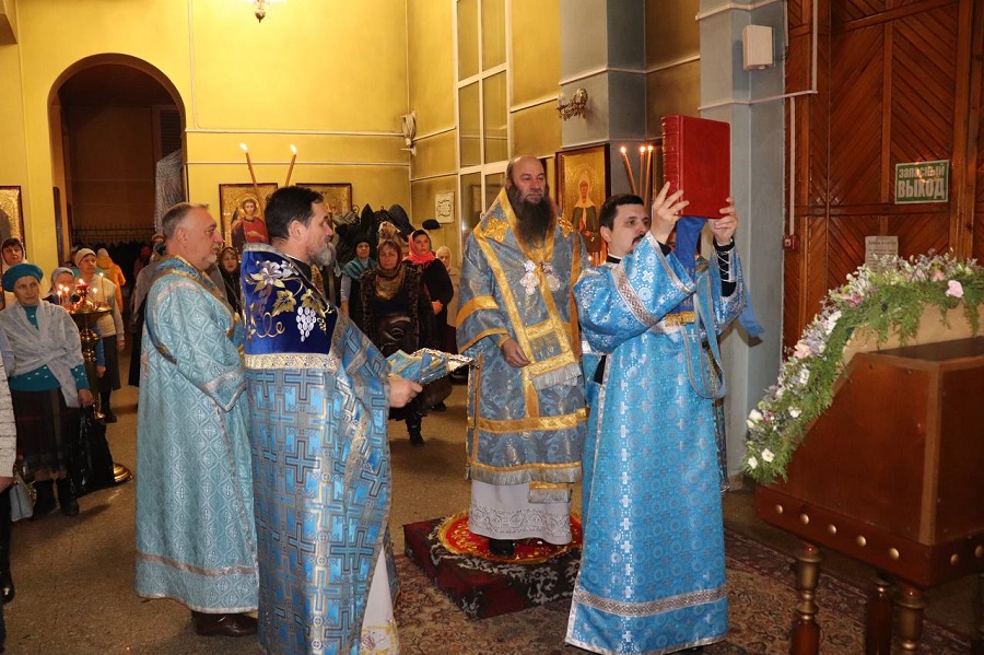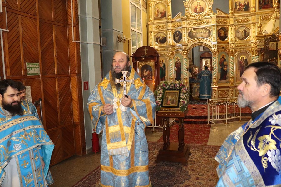 Его Преосвященству сослужили благочинный Новотроицкого округа настоятель собора протоиерей Сергий Кваша и клирики храма священник Даниил Желтухин и диакон Николай Кваша.