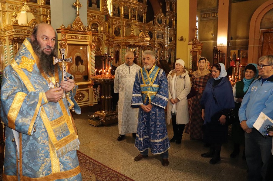 По окончании Богослужения архиерей обратился к прихожанам с проповедью, посвященной празднованию Введения во храм Пресвятой Богородицы.