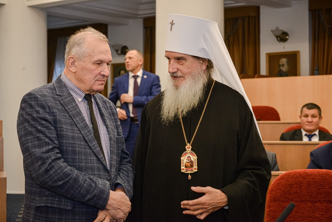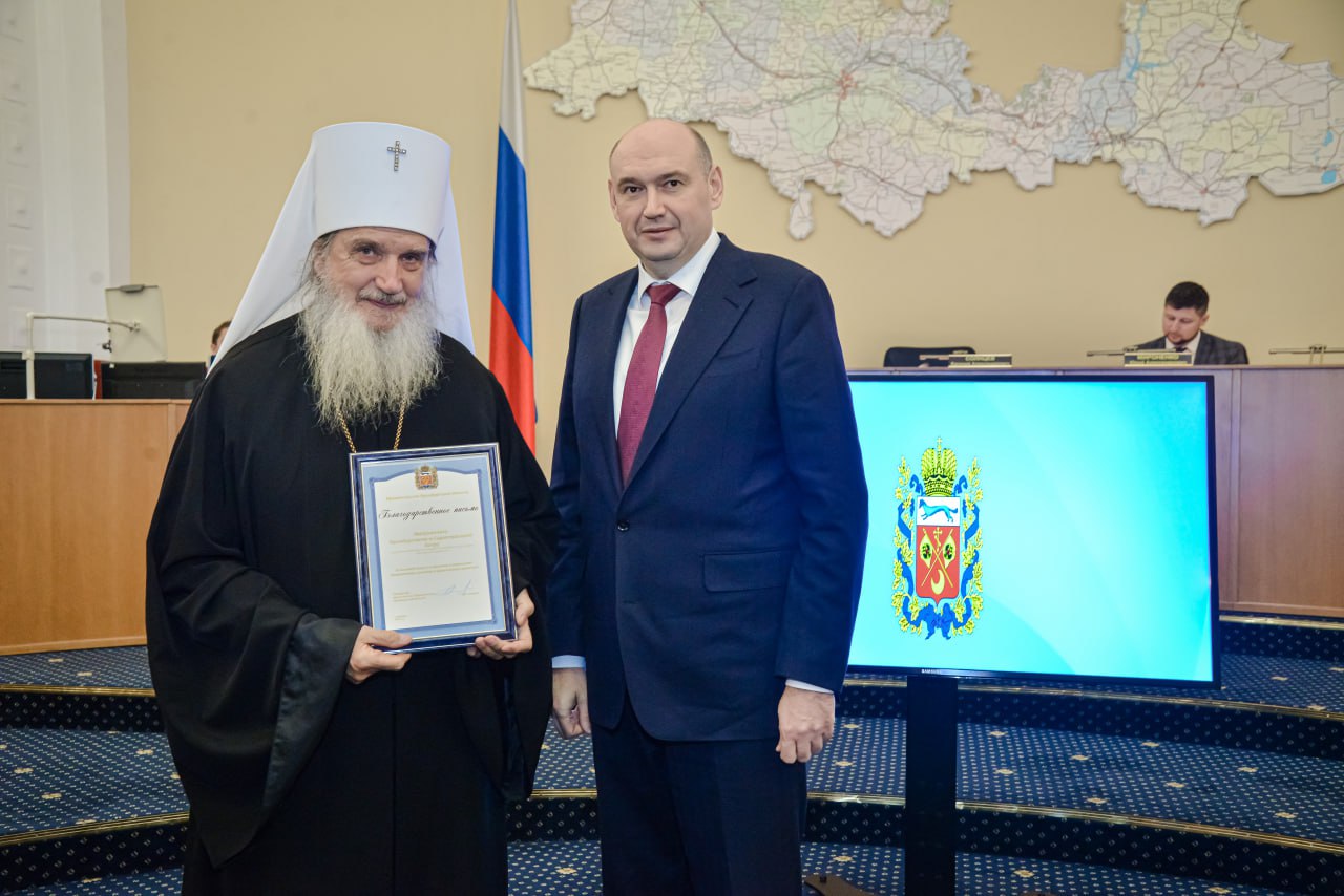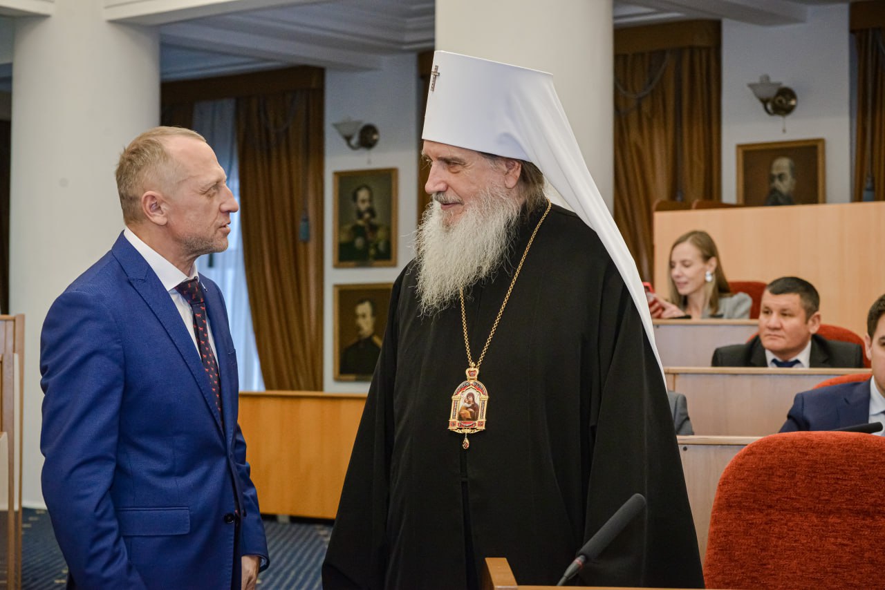 В конце заседания губернатор вручил благодарственное письмо владыке митрополиту "за большой вклад в сохранение и укрепление традиционных духовных и нравственных ценностей".