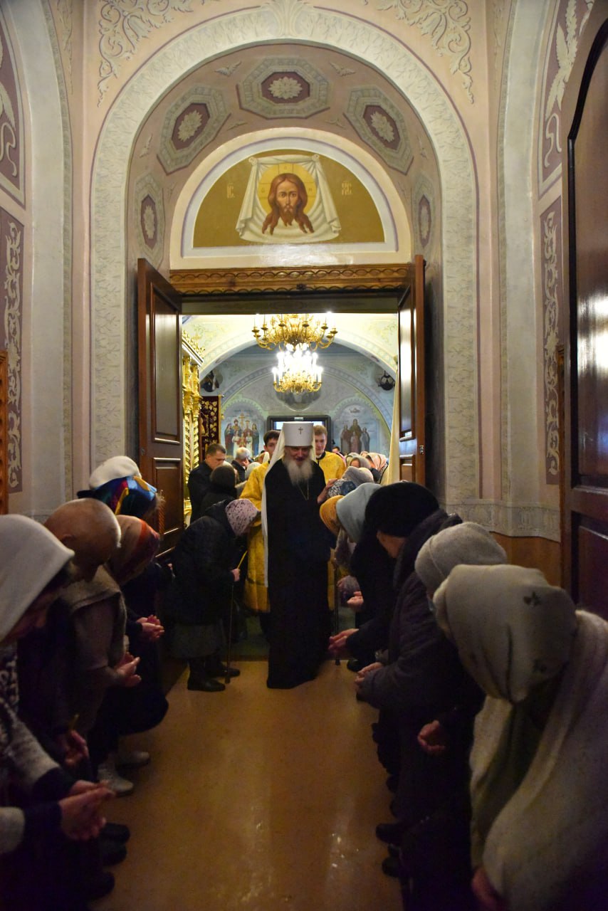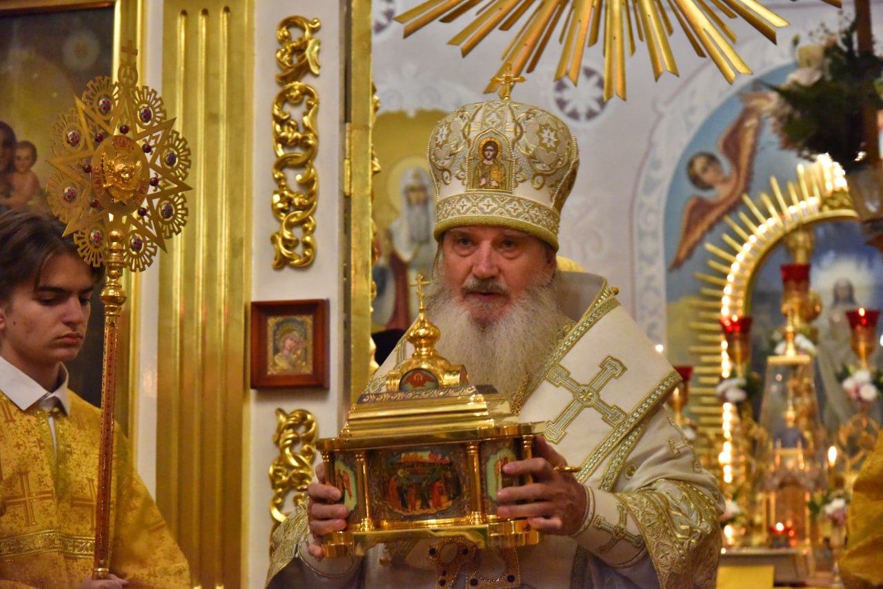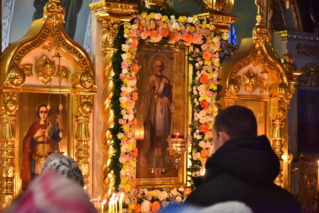 На полиелее великой утрени в составе всенощного бдения митрополит Петр изнес из алтаря и положил в центре храма ковчег с частицей мощей святителя Николая, архиепископа Мир Ликийских, чудотворца, для поклонения верующим.