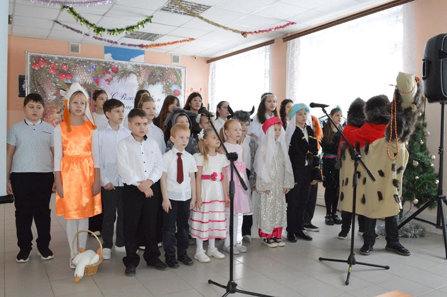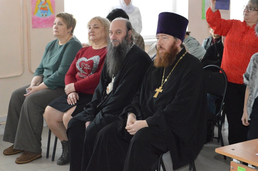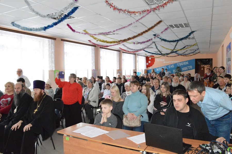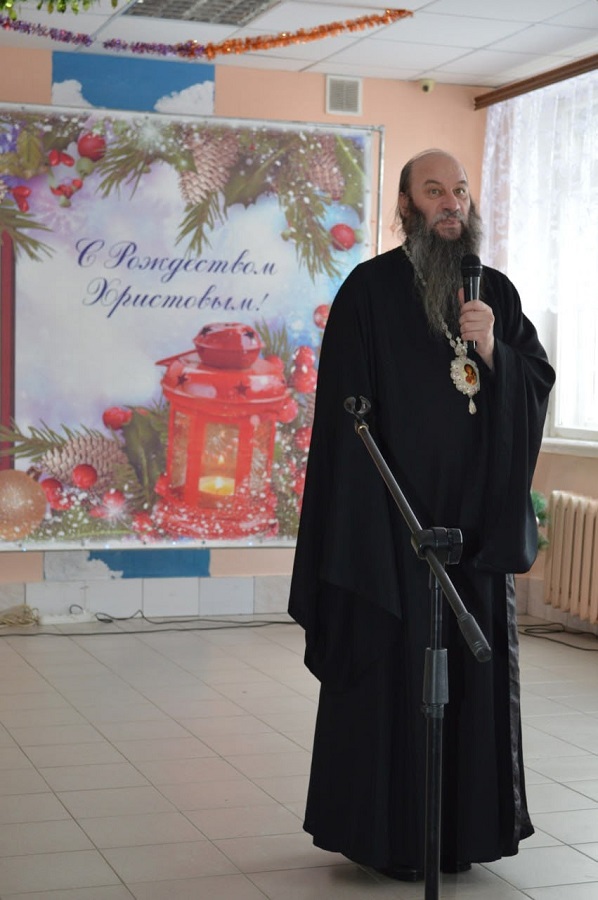 ОРСК, ПОС. ГУДРОН. 11 января 2026 г. После Божественной литургии и утренника в кафедральном соборе Преосвященнейший Ириней, епископ Орский и Гайский, по приглашению настоятеля храма Архангела Михаила священника Геннадия Новикова посетил школу №88, где проходил праздник "Поверь в Рождество!"