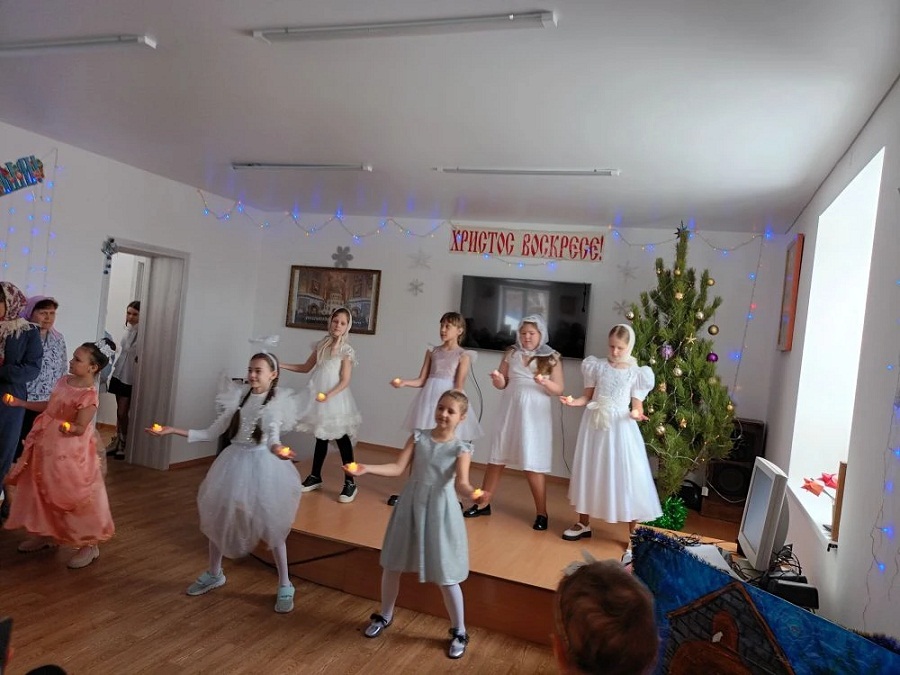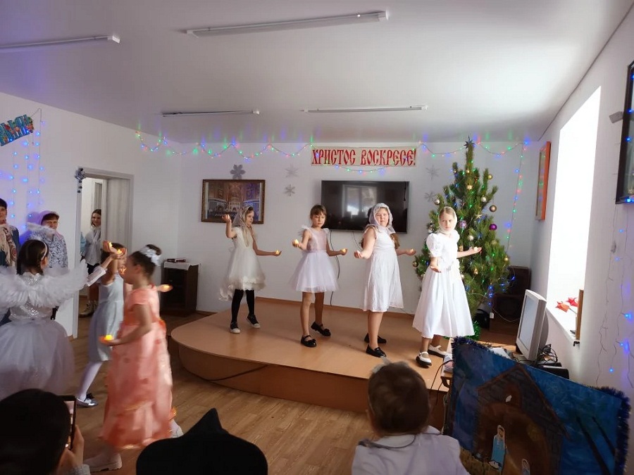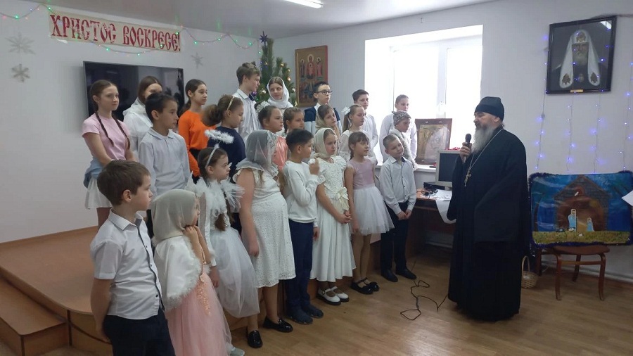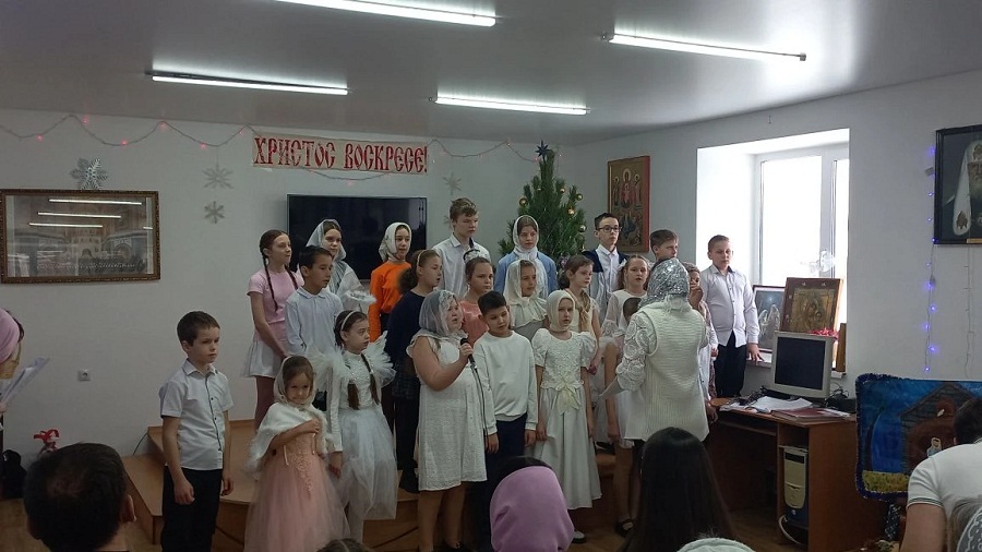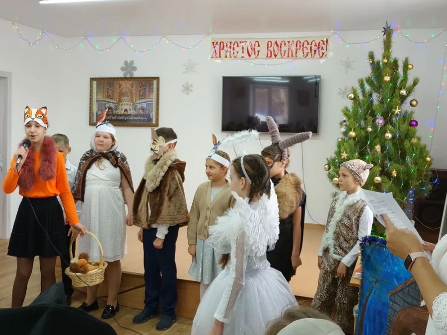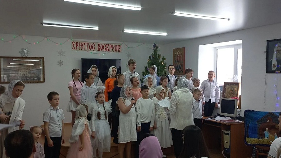 КУВАНДЫК. 7 января 2026 г. В день двунадесятого праздника Рождества Христова в актовом зале воскресной школы Покровского храма прошёл праздничный утренник, посвящённый Рождеству Христову.