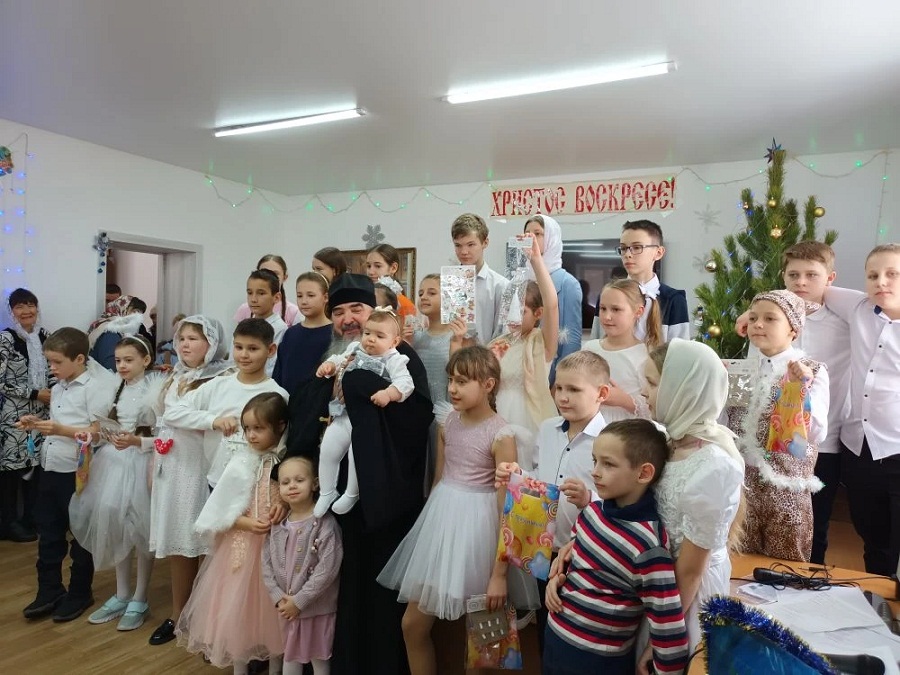 Отец Симеон сердечно поздравил всех с великим праздником Рождества Христова, пожелав мира, здоровья и Божией благодати каждому. В завершение праздника все юные умельцы, сделавшие поделки и рисунки для выставки, получили призы. Также призами были отмечены костюмы ребят: ангел, лев, лисица, соловей, леопард, осел, вол и др. После фото с батюшкой все дети, пришедшие на праздник, а также выпускники воскресной школы, которые с удовольствием приходят в гости в школу, получили рождественские подарки. Праздник подарил всем присутствующим ощущение тепла, мира и светлой веры — ведь Рождество Христово объединяет наши сердца и наполняет их любовью!
