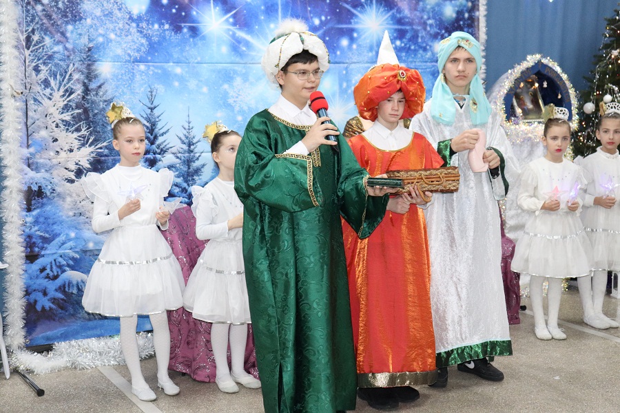 Праздничное выступление началось со спектакля «Чудесная звезда». Юные участники представили спектакль, в основу которого легли темы сострадания и помощи ближним. Сюжет был дополнен рождественскими стихами, песнями и колядками, которые дети исполняли с радостью, напоминая о рождении Спасителя и духовном смысле праздника.