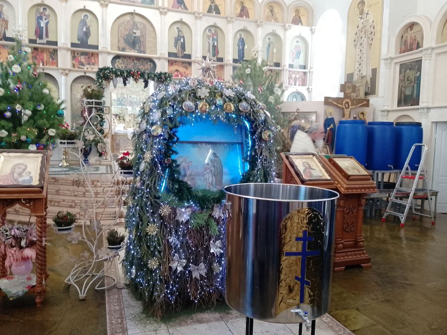 19 января, в сам день праздника, после ночной Божественной литургии священники также совершили чин великого освящения воды.