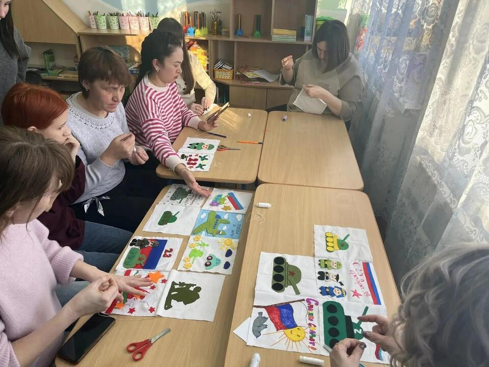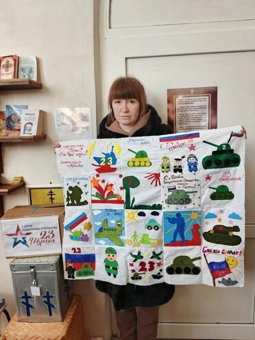 В рамках Всероссийской патриотической акции «Поздравь Защитника», приуроченной к 23 февраля, прихожане и сотрудники Покровского храма сшили праздничное полотно со словами поддержки в адрес солдат. Не остались в стороне и самые юные жители Адамовки. Воспитанники вместе с родителями и педагогами детского сада №3 изготовили для воинов-земляков поздравительные открытки.