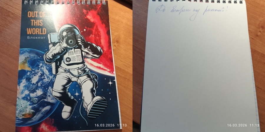 В конце мероприятия Евгения Константиновна подарила слушателям на память о встрече тематические блокноты с подписью: «До встречи под ракетой!»