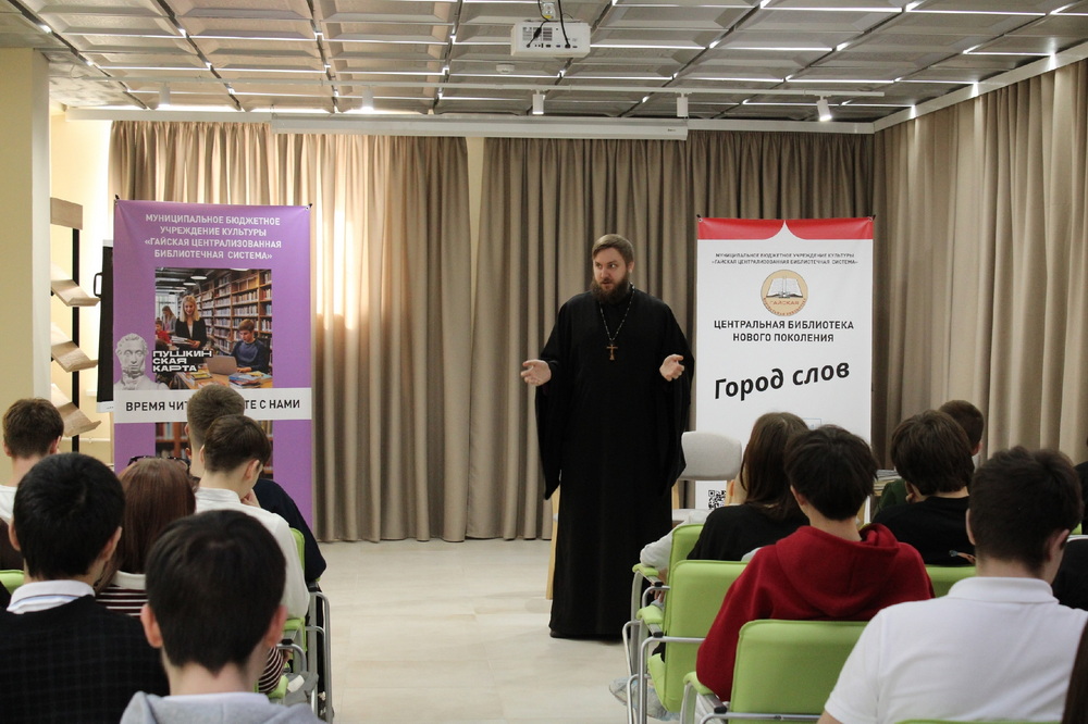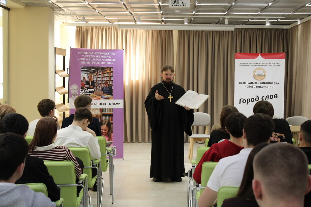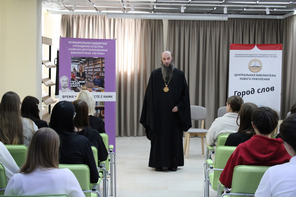 ГАЙ. 17 марта 2026 г. Епископ Орский и Гайский Ириней, по окончании богослужения в Иоанно-Кронштадтском кафедральном соборе, принял участие в мероприятии, посвященном Дню православной книги, которое прошло в Центральной библиотеке города.