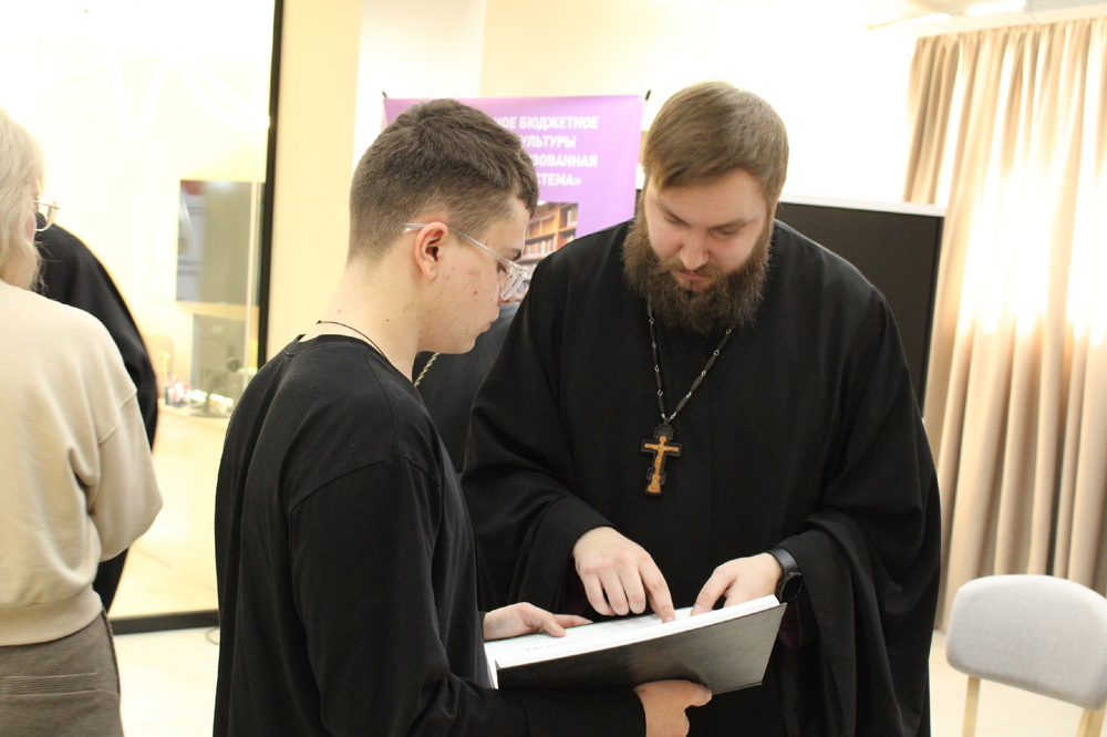 Священнослужители познакомили молодых людей с историей книги, с возникновением и развитием книгопечатания на Руси. Представили православные книги, дав возможность студентам прикоснуться к уникальным изданиям, попробовать прочесть старославянский текст.