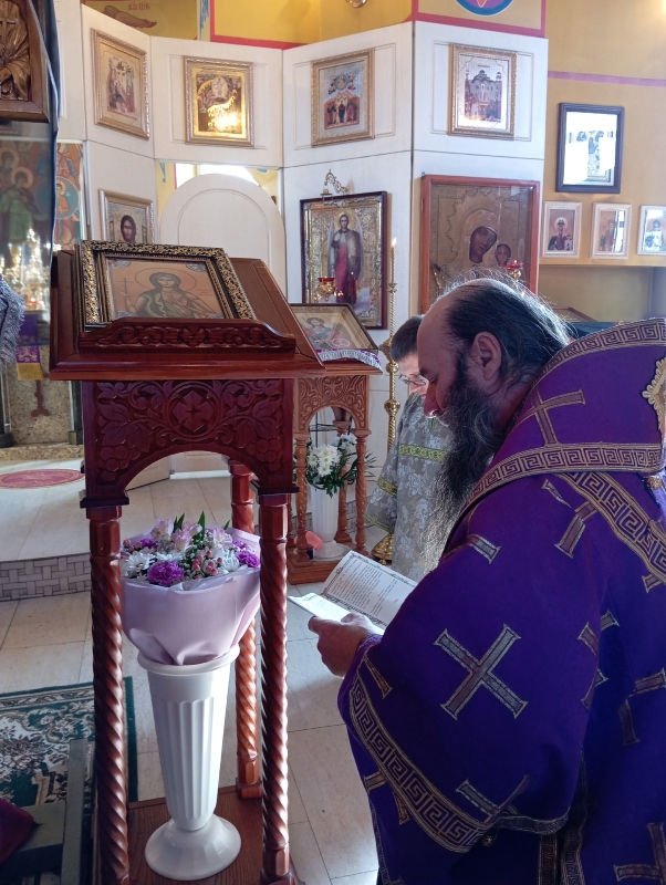 После отпуста Литургии священнослужители совершили славление преподобной Марии. Епископ Ириней прочитал коленопреклонную молитву из акафиста святой.