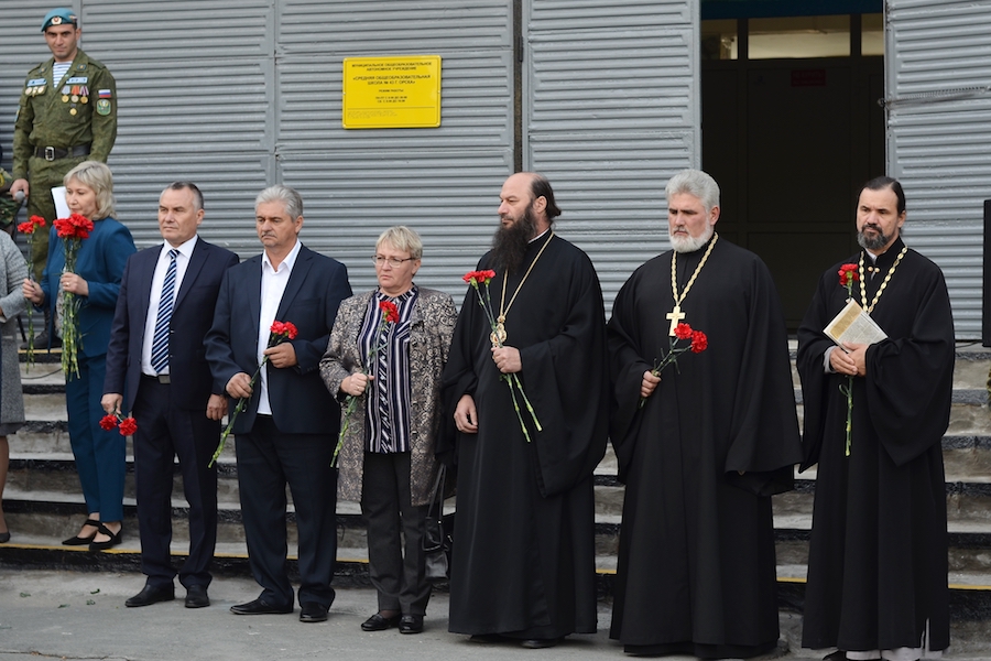 В этот день рано утром епископ Орский и Гайский Ириней, в сопровождении руководителя епархиального миссионерского отдела протоиерея Сергия Кваши и руководителя епархиального отдела по церковной благотворительности и социальному служению протоиерея Вячеслава Кочкина, участвовал в открытии мемориальной таблички с именем Героя Российской Федерации Александра Прохоренко на территории школы № 43.