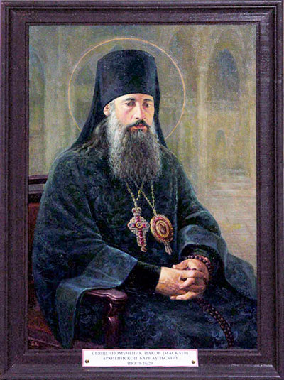 Священномученик Иаков (в миру Яков Иванович Маскаев) родился 13 октября 1879 года в городе Уральске в семье крестьян села Еделева Сызранского уезда Симбирской губернии и был назван в память апостола Иакова Алфеева. В 1901 году Иаков Иванович окончил Оренбургскую Духовную семинарию. Учась на последнем курсе, он женился на девице Валентине, которая была круглой сиротой и воспитывалась в семье священника. В 1901 году у них родился сын Борис. Вскоре он смертельно заболел, и отец Иаков, который был уже тогда священником, горячо молился о его выздоровлении. Он обращался в своих молитвах за помощью ко всем святым, но особенно горячо и с большой верой к преподобному Серафиму Саровскому и дал обет, что, если младенец выздоровеет, он совершит паломничество в Саровский монастырь к мощам только что прославленного преподобного Серафима. По чудесном выздоровлении сына он исполнил свой обет и совершил паломничество в Саровский монастырь. Впоследствии у них с супругой родилось девять детей, и она умерла при родах последнего ребенка в 1918 году.