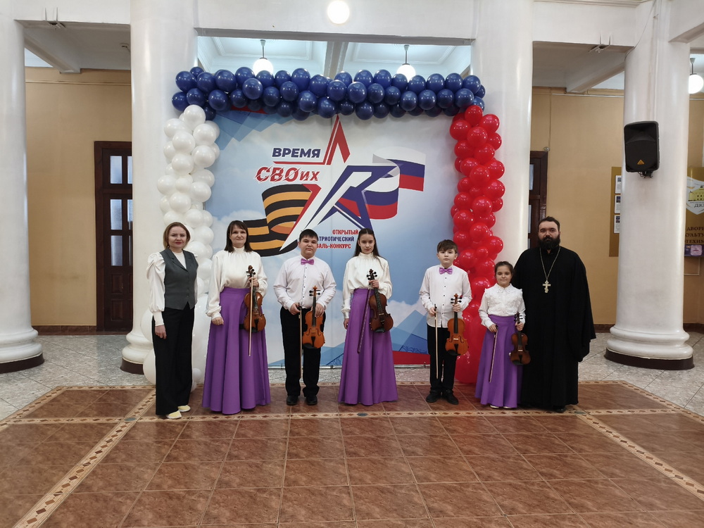 ОРСК. 7 февраля 2026 года ансамбль скрипачей Детской школы искусств посёлка Энергетик, под руководством Елены Патоска, принял участие в Открытом патриотическом фестивале-конкурсе «Время СВОих» и занял звание Лауреата III степени. Солистом выступил священник Димитрий Патоска, настоятель храма св. вмч. Георгия Победоносца п. Энергетика.