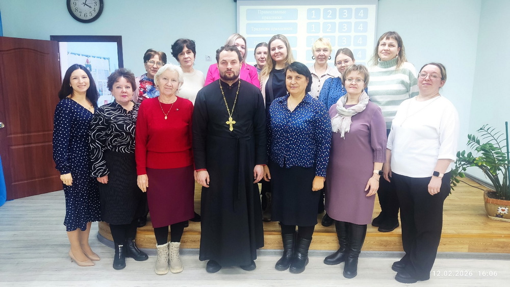 МЕДНОГОРСК 12 февраля 2026 г. В день памяти трех великих святителей и учителей Церкви: святителей Василия Великого, Григория Богослова и Иоанна Златоустого в храме святителя Николая Чудотворца (микрорайона Южный) города Медногорска прошла встреча-открытый урок педагогов городских школ с настоятелем храма и благочинным Медногорского округа иереем Максимом Малютой.