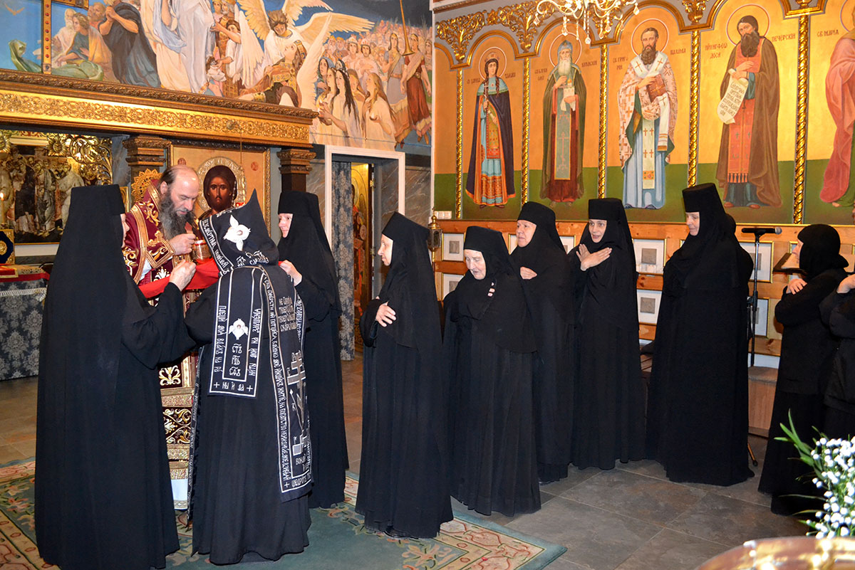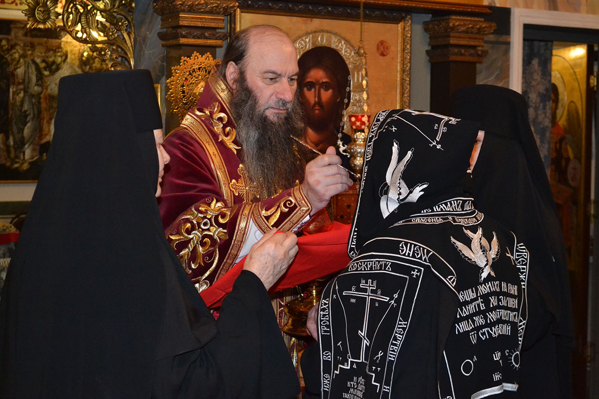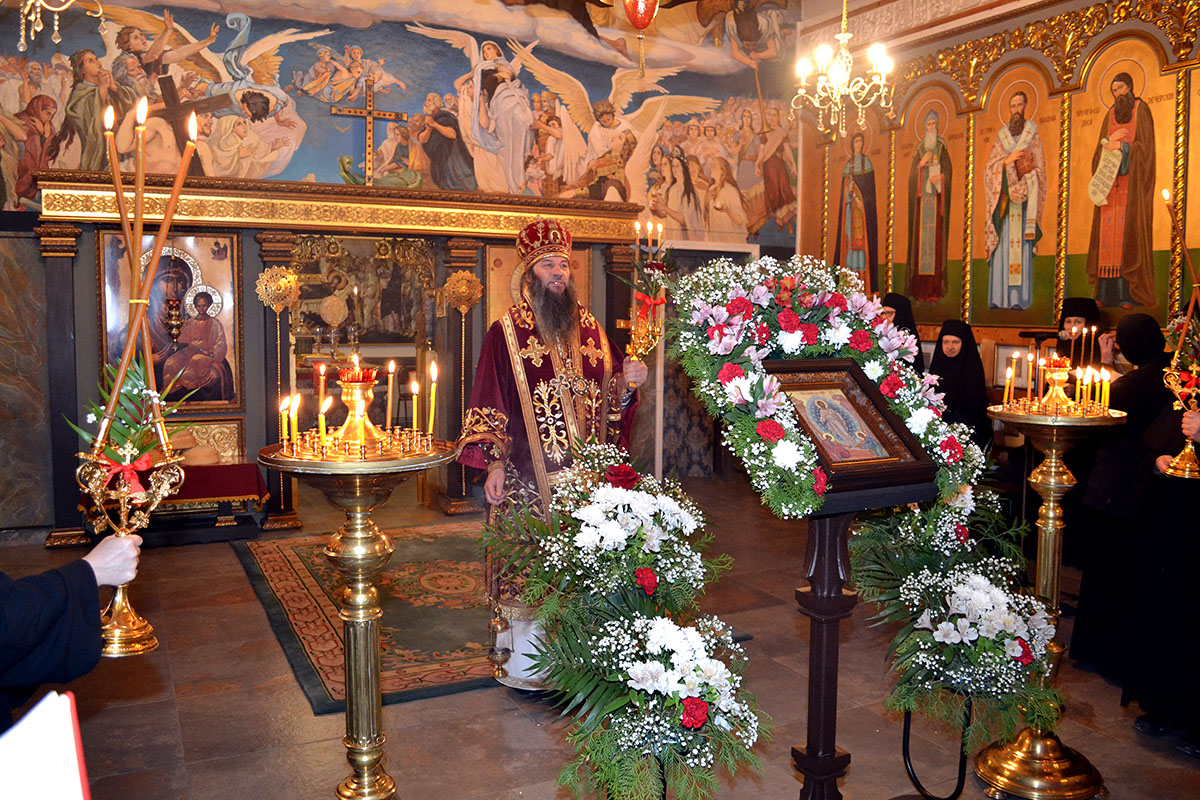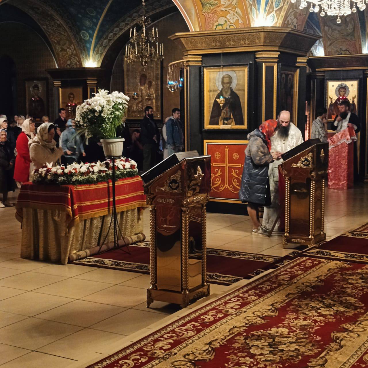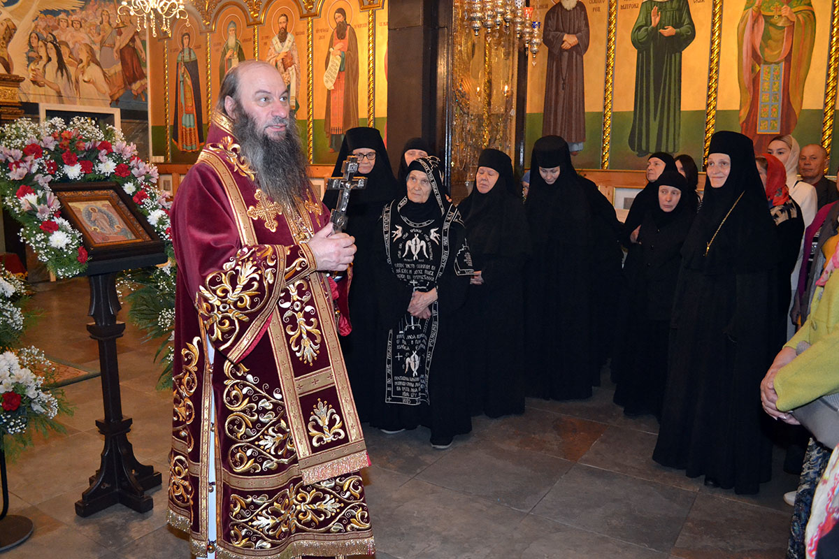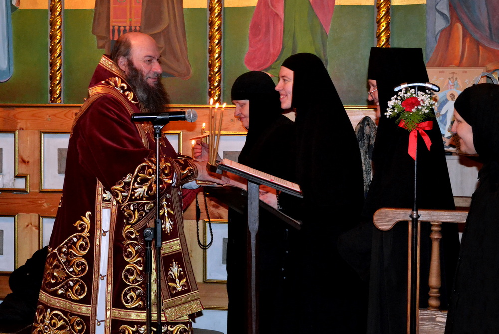 После пения пасхального канона Преосвященнейший Ириней в сопровождении архидиакона Викентия (Геницэ) отправился в Иверский женский монастырь, где был встречен духовенством, сестрами обители во главе с игуменией и прихожанами.