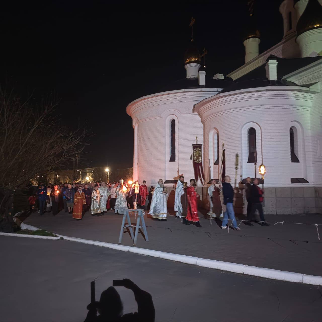 ОРСК. 20 апреля 2025 г. В ночь на праздник Светлого Христова Воскресения - Пасхи Господней Преосвященнейший Ириней, епископ Орский и Гайский, прибыл в кафедральный Свято-Георгиевский собор.
