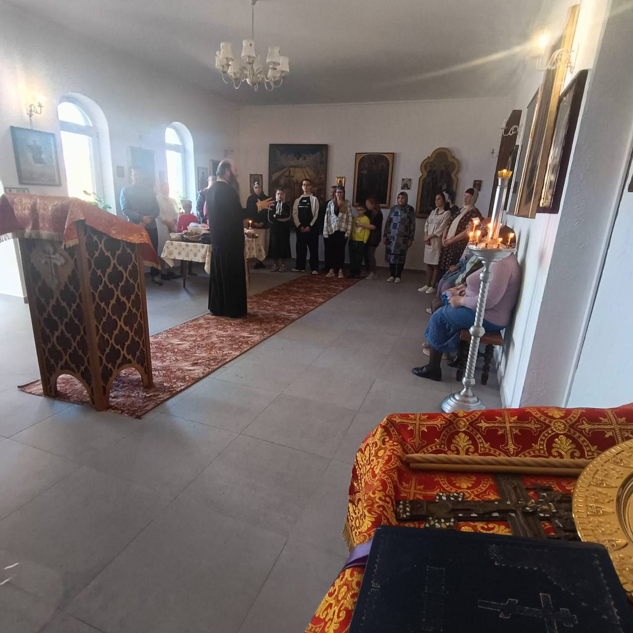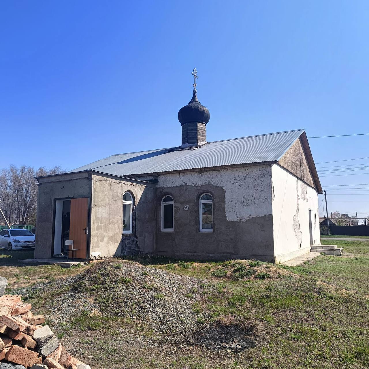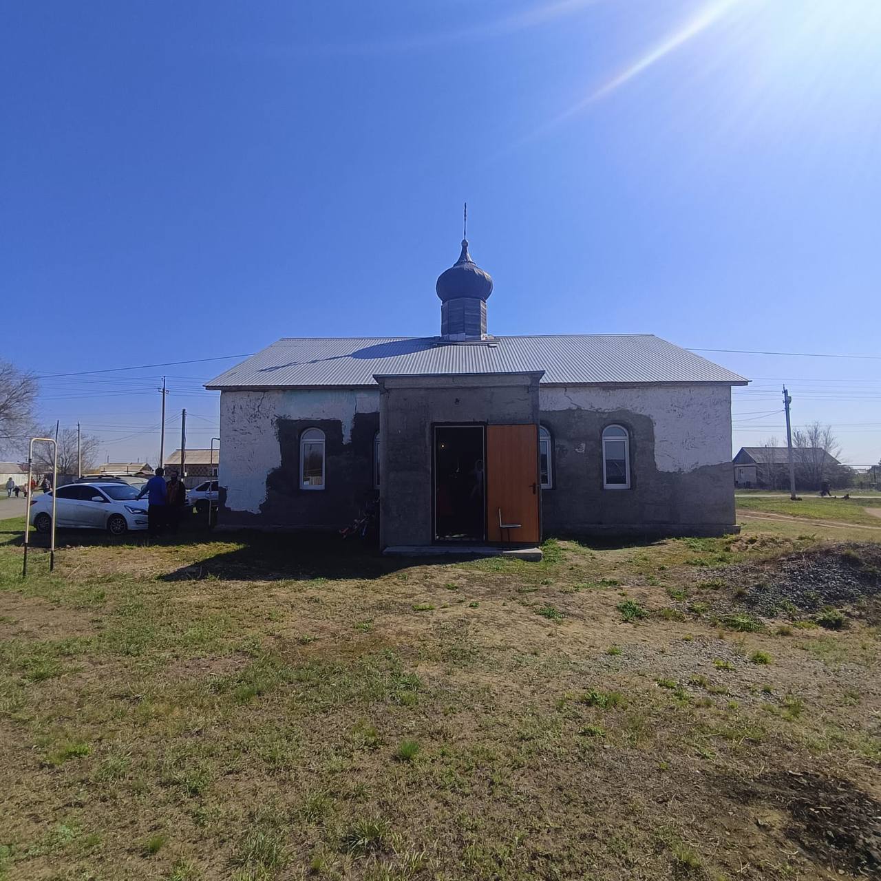 С. КРЫЛОВКА. 20 апреля 2025 г. В первый день Святой Пасхи - Светлого Христова Воскресения епископ Орский и Гайский Ириней в сопровождении священника Алексия Атамасова и архидиакона Викентия (Геницэ) прибыл в село Крыловку.