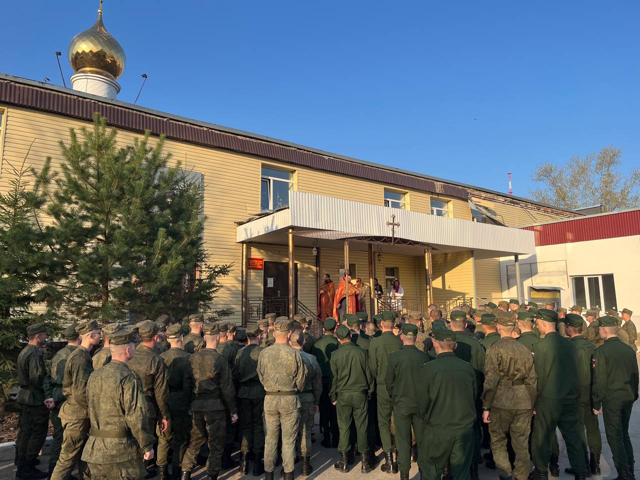 Праздничную Божественную литургию совершили руководитель епархиального отдела по взаимодействию с Вооруженными силами и правоохранительными органами, благочинный Ясненского округа священник Михаил Яковлев и настоятель храма вмч. Пантелеимона г. Ясного священник Павел Селиверстов. После Литургии благочинный поздравил военнослужащих с Пасхой Христовой и обратился к ним с проповедью.
