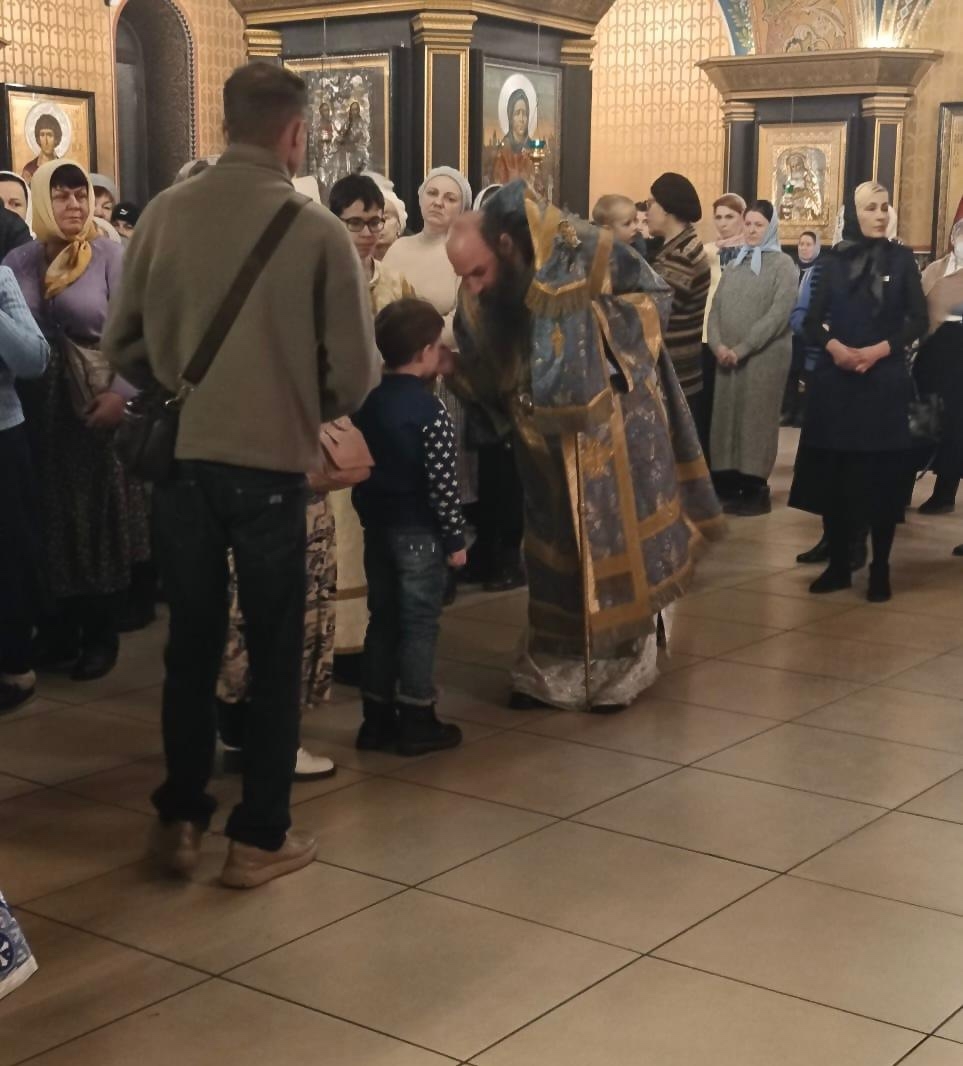За великой вечерней Преосвященнейший Ириней принимал исповедь молящихся. Во время чтения праздничного канона владыка совершил елеопомазание молящихся.