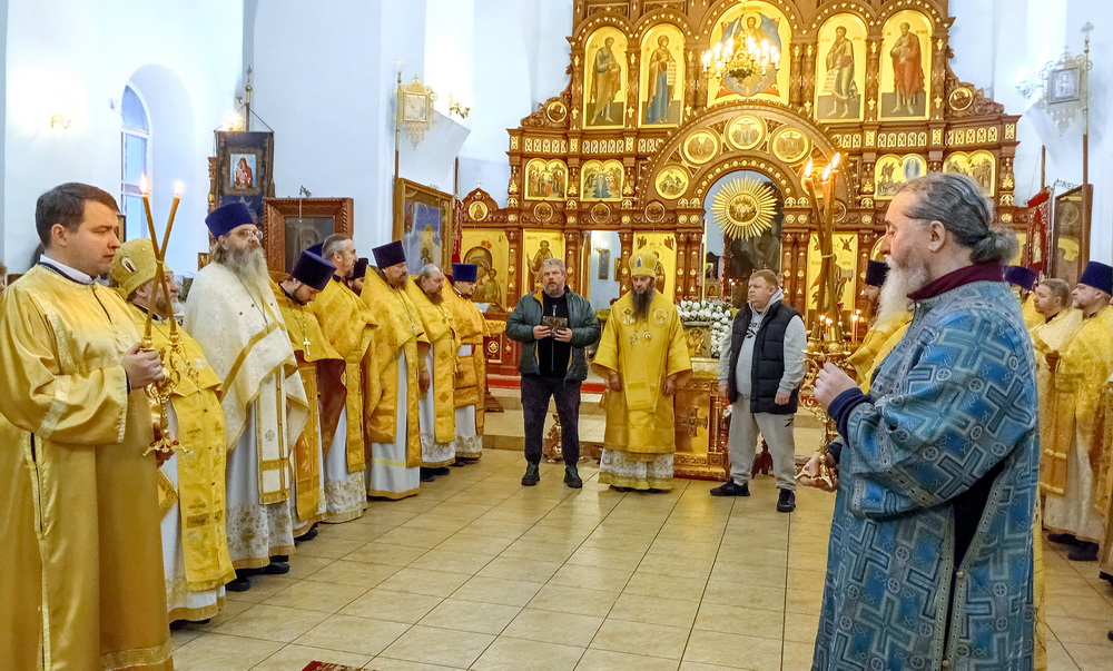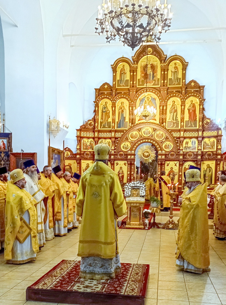 Его Преосвященству сослужил собор духовенства Орской епархии.