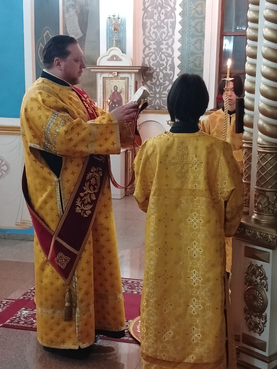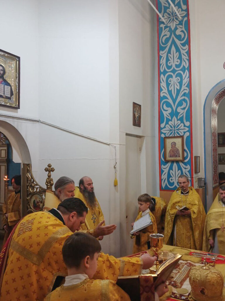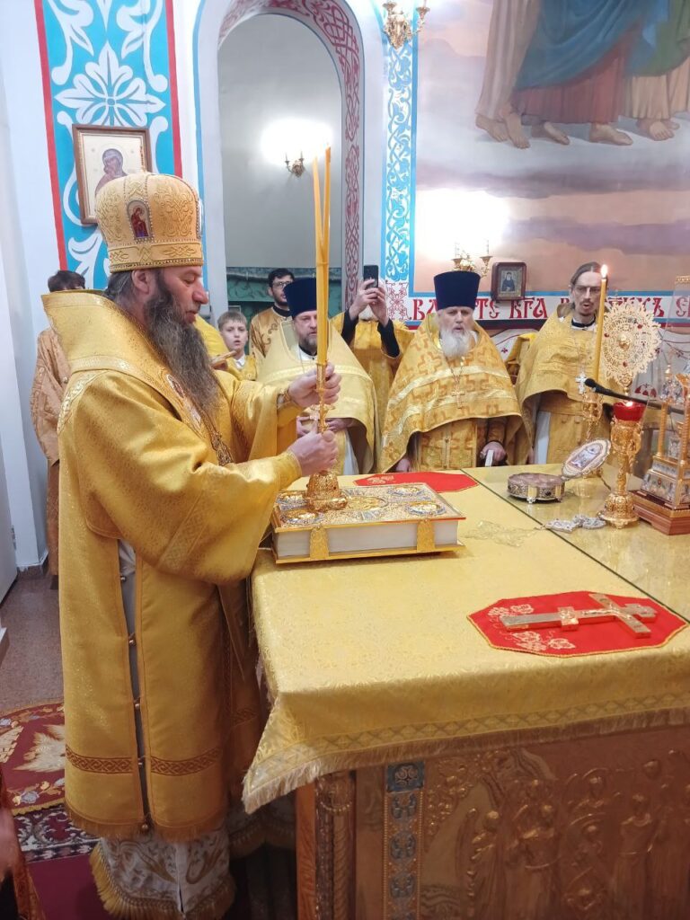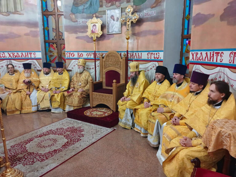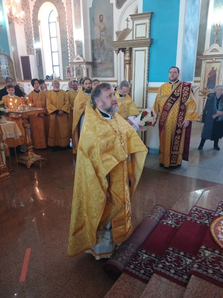 В завершение Литургии было провозглашено многолетие Предстоятелю Русской Православной Церкви Святейшему Патриарху Московскому и всея Руси Кириллу; Главе Казахстанского Митрополичьего округа митрополиту Александру, епископу Актюбинскому и Кызылординскому Игнатию и всем православным христианам.