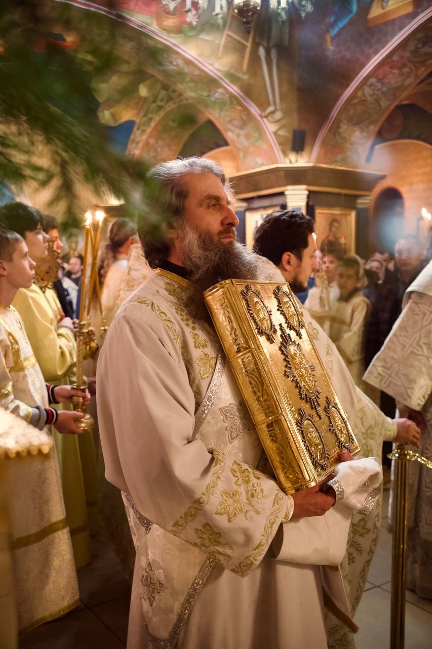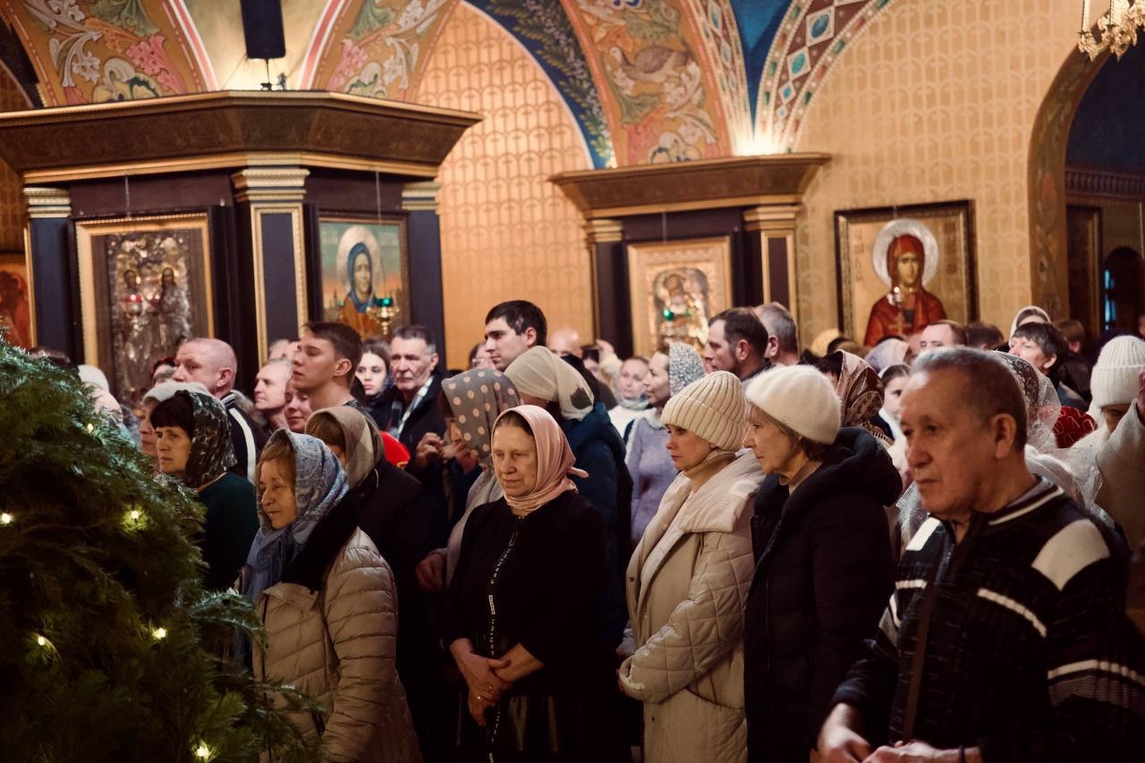 ОРСК. 7 января 2026 г. В Рождество Господа Бога и Спаса нашего Иисуса Христа, Преосвященнейший Ириней возглавил всенощное бдение и Божественную литургию в Свято-Георгиевском кафедральном соборе.