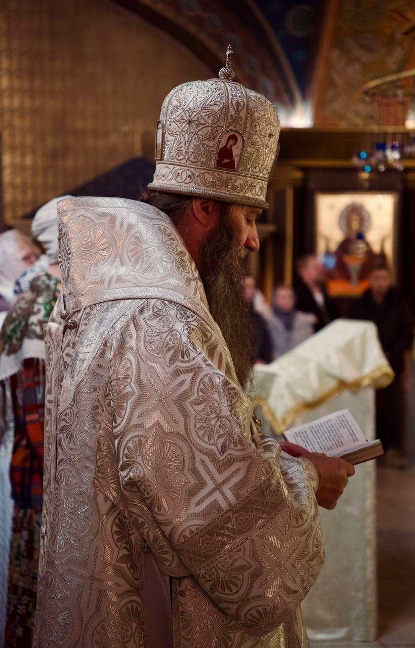 Его Преосвященству сослужили настоятель собора протоиерей Александр Куцов, клирики собора протоиерей Георгий Кожеватов, священник Сергий Куцов, священник Георгий Чернявский, архидиакон Викентий (Геницэ).