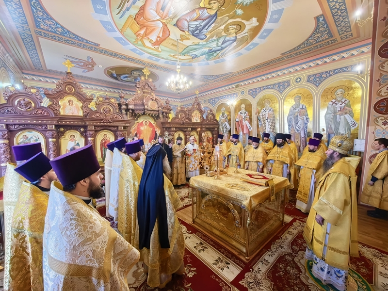 Торжественный праздник начался с Божественной литургии в домовом храме Оренбургской духовной семинарии, которую возглавил епископ Орский и Гайский Ириней. Его Преосвященству сослужили ректор Оренбургской духовной семинарии иерей Пётр Панов, протоиерей Александр Куцов, ректор Николо-Угрешской духовной семинарии иеромонах Лука (Пронских), игумен Варнава (Соколов), духовник Семинарии протоиерей Геннадий Корниенко, проректор по учебной работе иерей Алексий Колыванов, заведующий отделением заочного обучения и дополнительного образования иерей Сергий Мячин, протоиерей Дионисий Волков, иерей Антоний Федоров, благочинный Казанского и Иоанно-Предтеченкого округов иерей Константин Крымов, иерей Александр Филонов, иерей Андрей Александров, иерей Леонид Кудрячов, иерей Александр Щукин, протоиерей Сергий Ушаков, иерей Вячеслав Зайцев, иерей Василий Савенков, иерей Сергий Чащин, иерей Илия Пелипенко, диакон Виктор Довмат, иеродиакон Лаврентий (Муртазов), диакон Владимир Забара и диакон Павел Парастаев.