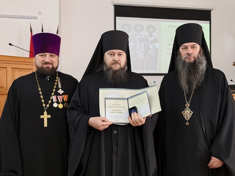 С академическим докладом «"Золотой собор" Оренбурга: от кафедры - к учебному храму, из руин - к возрождению (1746 - 2026)» выступил заведующий регентским отделением иерей Александр Ромашков. По случаю завершения обучения выпускников заочного отделения с благодарственным словом от лица курса обратился иерей Андрей Александров. Затем состоялось торжественное вручение дипломов бакалавра выпускникам.