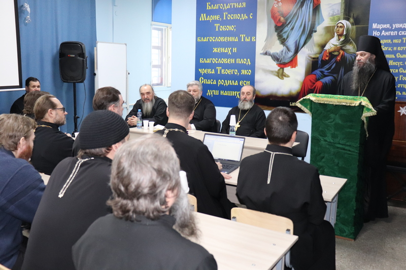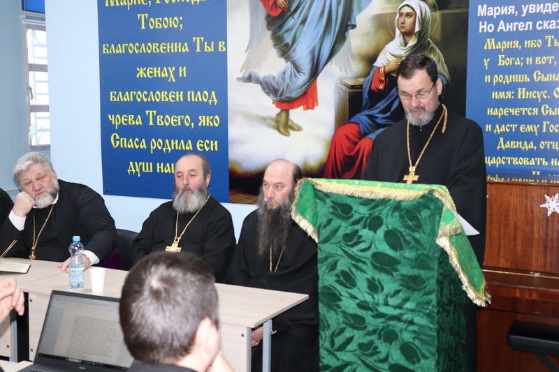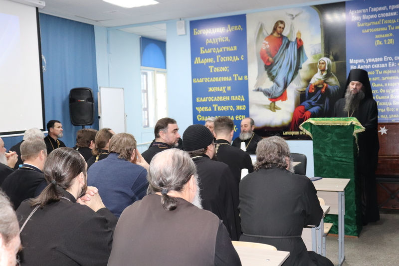 С докладом выступил Преосвященнейший Ириней, епископ Орский и Гайский. В своем выступлении Его Преосвященство коснулся актуальных тем жизни и деятельности духовенства Орской епархии - необходимости быть осторожными в практике исповеди, частого совершения богослужений в Великий пост, благоговения к Божественной литургии. Также правящий архиерей рассказал о мероприятиях, которые должны будут состояться в наступившем году и призвал священнослужителей к обязательному в них участию. В своем докладе епископ Ириней затронул также дисциплинарные вопросы.