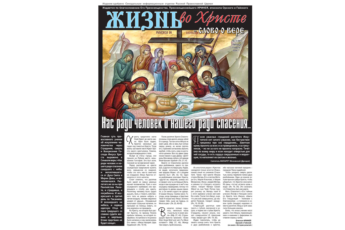 Основная тема великопостного периода – наше внутреннее пробуждение и покаяние. Открывает номер статья «Нас ради человек и нашего ради спасения...». Это отрывок из книги «История религий» епископа Орского и Гайского Иринея, который повествует о событиях последнего дня земной жизни Спасителя: Его страданиях и крестной смерти.