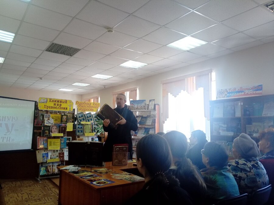 КВАРКЕНО. 13 марта 2026 г. В центральной библиотеке Кваркенского района состоялось мероприятие "Через православную книгу - к духовности", приуроченное ко Дню православной книги. Инициатором встречи стал священник Владимир Бабак, благочинный Кваркенского округа.