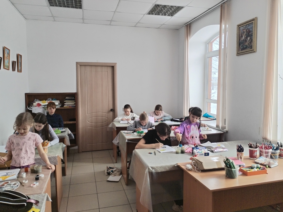 Педагог Духовно-просветительского центра при Пантелеимоновском храме Юлия Квасова провела в течение двух недель с 2 по 15 марта несколько творческих занятий, посвящённое изготовлению книги «Русские святые». На первом уроке Юлия Ивановна предложила детям изготовить свои книги с объёмными иллюстрациями. Юные художники с большим интересом приступили к созданию собственных книг и работали в течение двух недель. Они придумывали обложки, делали иллюстрации, раскрашивали буквицы, придумывали к ним орнаменты. Затем с помощью клея склеивали страницы в готовую книгу, в которой содержалась краткая информация о нескольких святых. В ходе занятий воспитанники Центра получили радость от своих трудов, а также новые знания и умения.