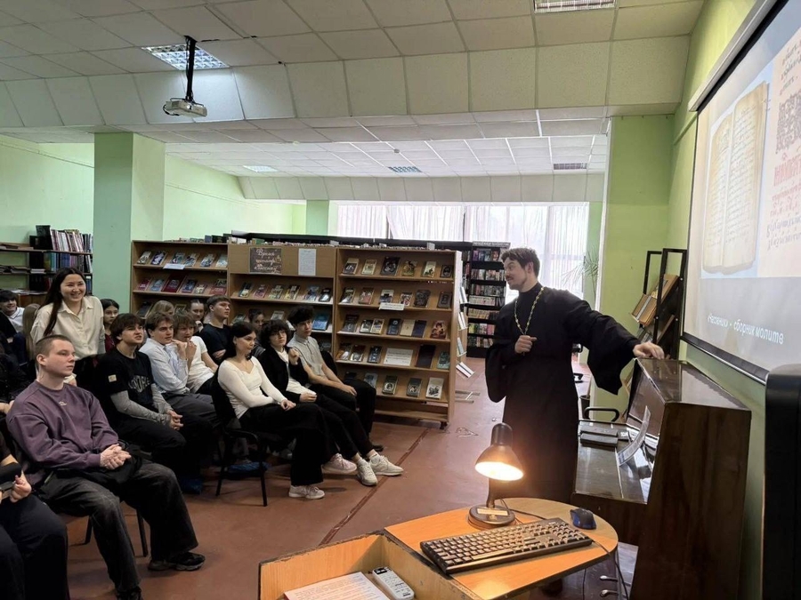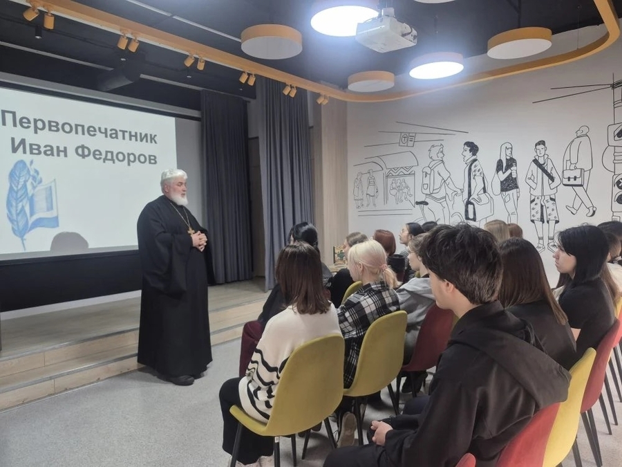 13 марта в здании модельной библиотеки «Пять горожан» состоялась встреча благочинного Орского округа протоиерея Вячеслава Кочкина со студентами. Отец Вячеслав рассказал о развитии книгопечатания, о его значении для народного просвещения; подчеркнул важность внимательного отношения к словам учителей и наставников, ведь через них тоже передаётся благодатное знание. В ходе лекции отец Вячеслав использовал презентацию, а также богослужебные и исторические книги, книги Патриарха Московского и всея Руси Кирилла и епископа Орского и Гайского Иринея, копию рукописной книги Ивана Грозного. Учащиеся техникума с живым любопытством рассматривали страницы представленных книг, изучали оформление, церковнославянские буквы и иллюстрации, прикасаясь к живой традиции.