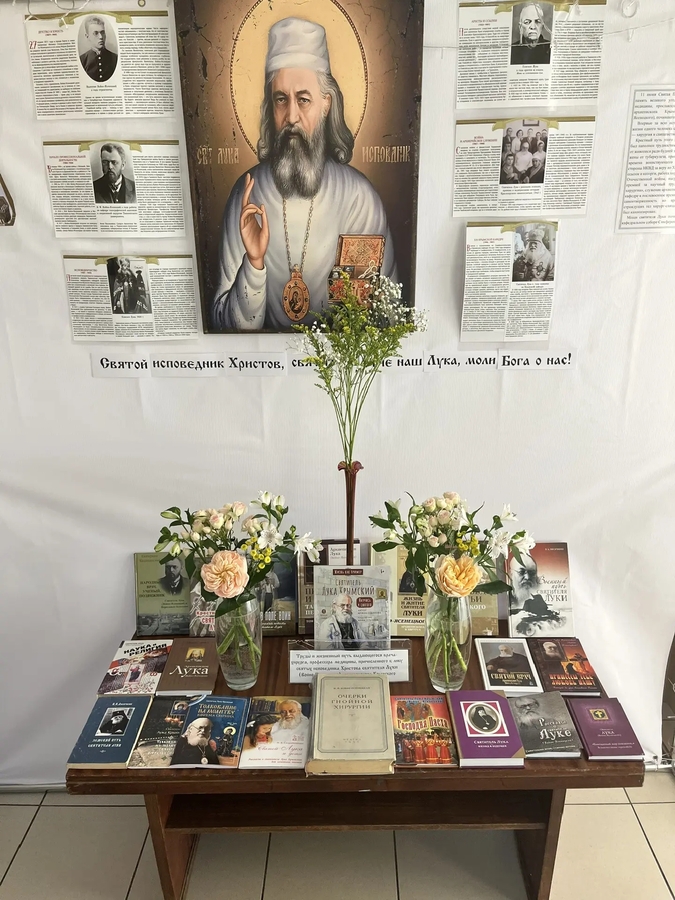 К престольному празднику сотрудники храма во главе со старостой организовали для пациентов в больничном коридоре информационный уголок, рассказывающий о жизни и деятельности святителя Луки Крымского (Войно-Ясенецкого).