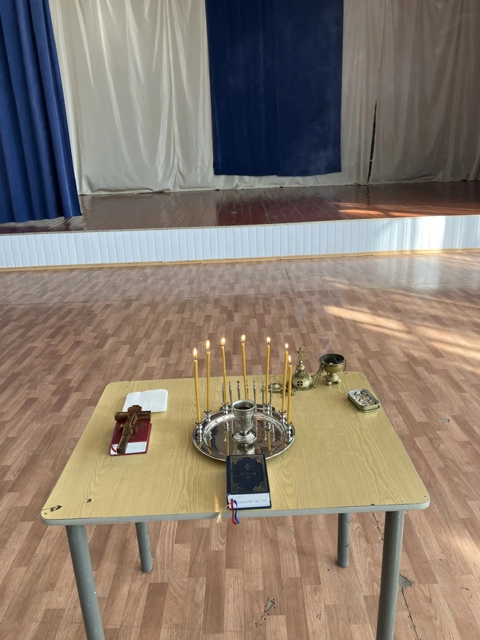 В актовом зале соцучреждения священник Иоанн Келбуцэ совершил таинство Елеосвящения (Соборования). В Таинстве приняли участие около десяти человек, соборно вознося молитвы Господу об исцелении душевных и телесных недугов.