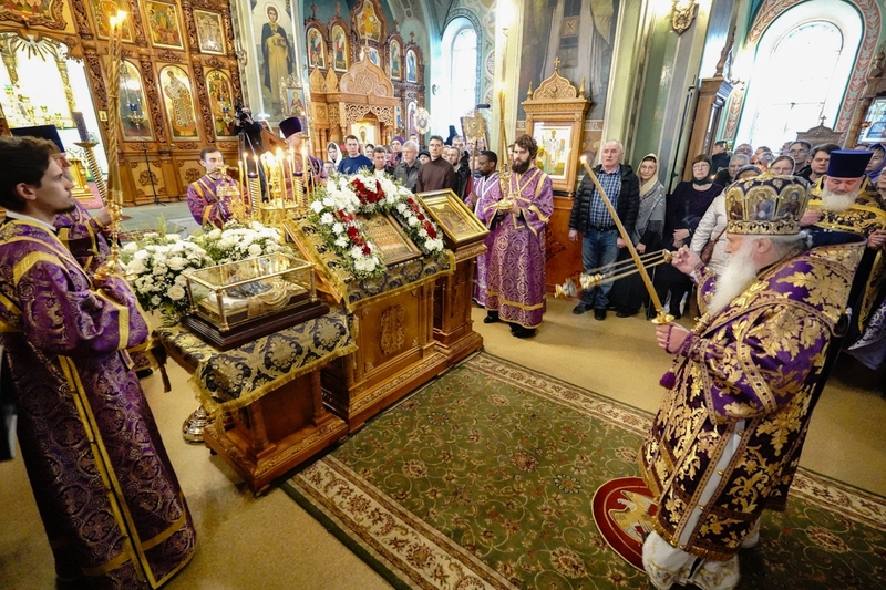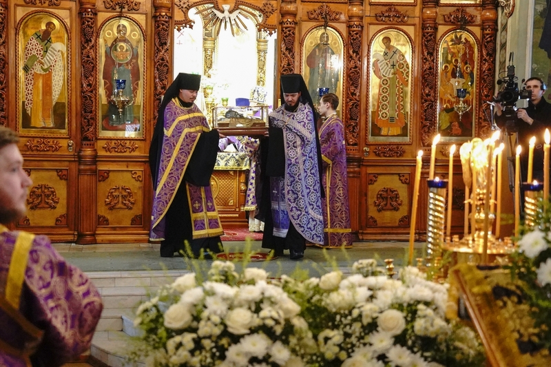 Во время полиелея для поклонения были вынесены мощи апостола Андрея Первозванного в новом ковчеге. Его изготовили в Златоусте мастера компании «ЛиК» в стилистике дореволюционного образца. Во время чтения канона митрополит Викентий помазал верующих освященным елеем. Все прихожане смогли приложиться к святыне в новом ковчеге.