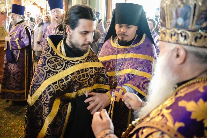 На малом входе клирика Свято-Троицкого храма иерея Михаила Токмака наградили правом ношения наперсного креста золотого цвета.