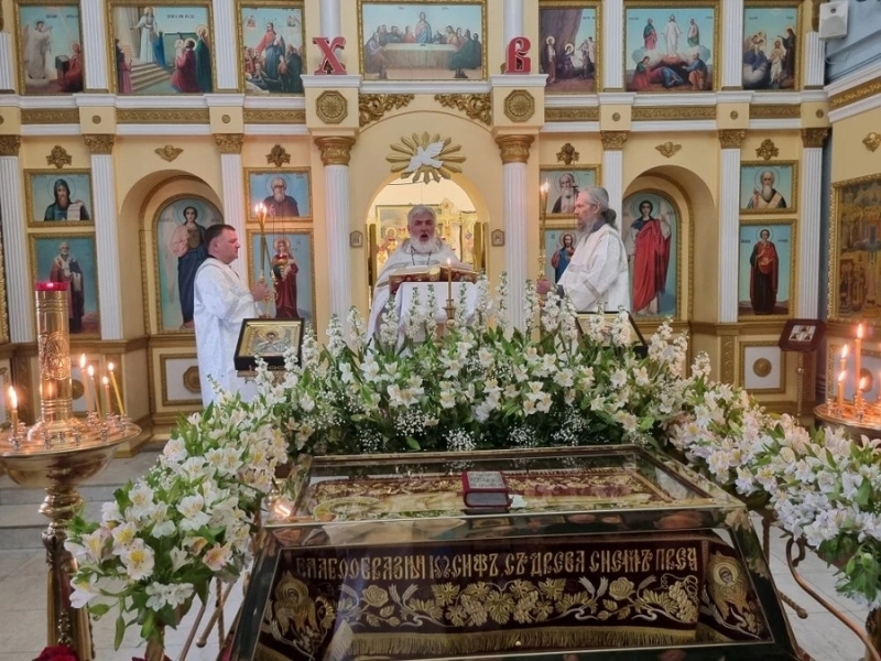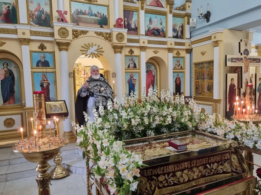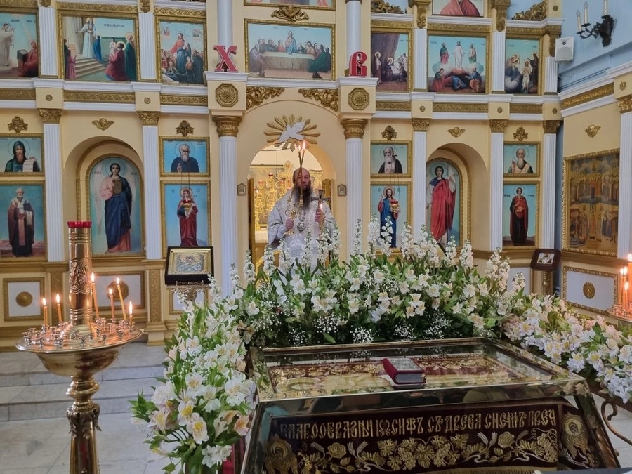 Его Преосвященству сослужил настоятель храма, благочинный Орского округа протоиерей Вячеслав Кочкин. Богослужебные песнопения исполнил храмовый хор под управлением Кристины Топоровой.