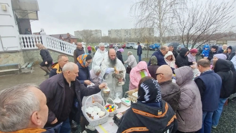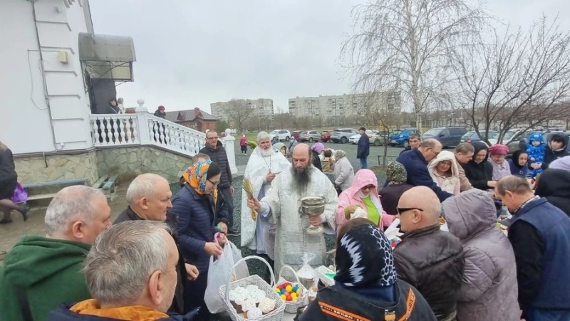 После Божественной литургии епископ Ириней обратился к прихожанам с архипастырским словом. Затем правящий архиерей освятил куличи и пасхи, принесённые верующими в храм для освящения.