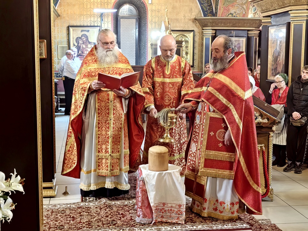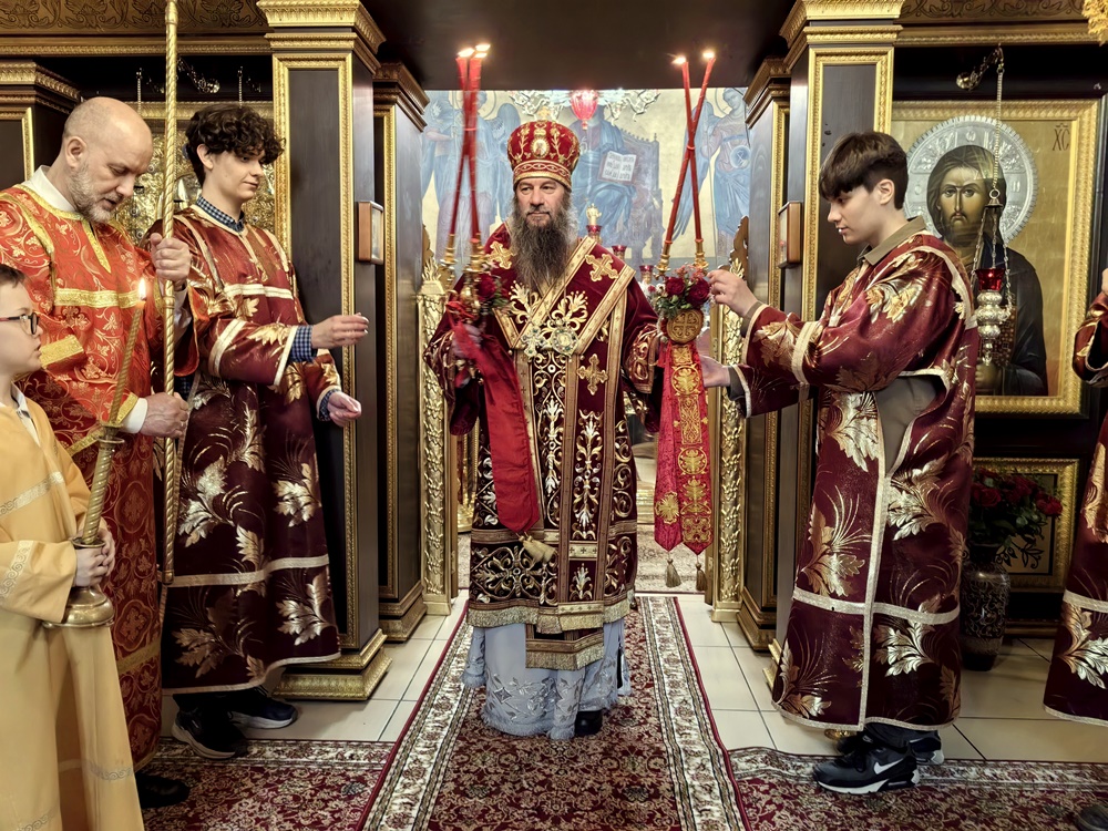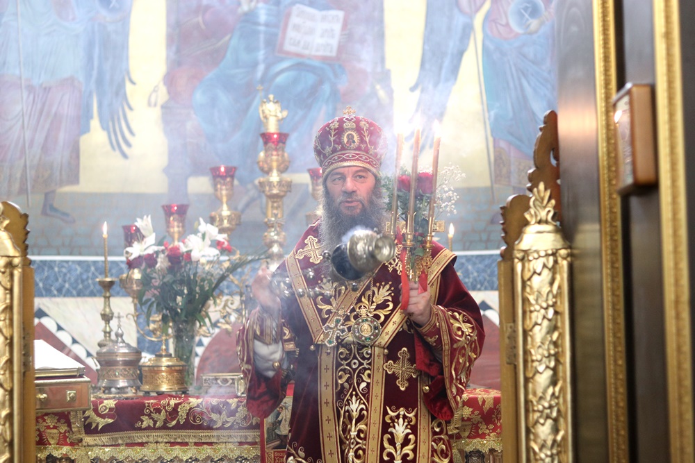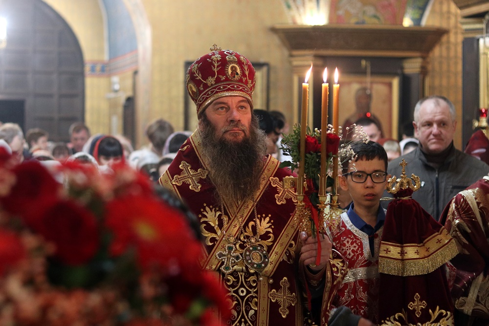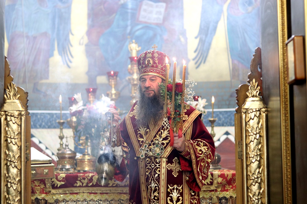 Владыке сослужили настоятель собора протоиерей Александр Куцов, протоиерей Георгий Кожеватов, священники Сергий Куцов и Георгий Чернявский.