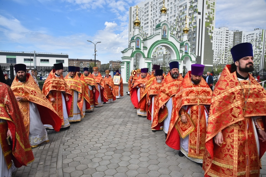 По заамвонной молитве был совершён крестный ход вокруг храма.