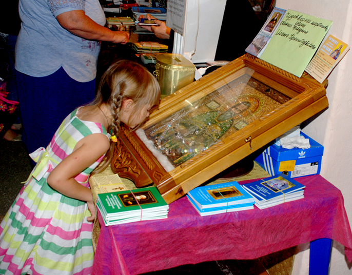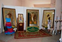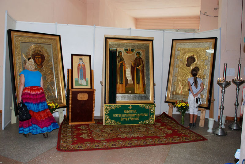 Главными святынями выставки стали посох и икона преподобного Паисия Величковского, а также икона святых Петра и Февронии Муромских с частицами их мощей.