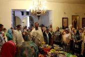 По окончанию праздничной Литургии настоятель освятил плоды нового урожая и окропил молящихся святой водой. Благословляя приносимые в храм плоды, Церковь тем самым утверждает: всё, от человека до растения, должно быть посвящено Богу, как Его творение. Церковь молит Господа, чтобы Он даровал вкушающим плоды освящение души вместе с освящением тела, чтобы хранил жизнь их в покое и радости, чтобы сами эти плоды богато умножались.