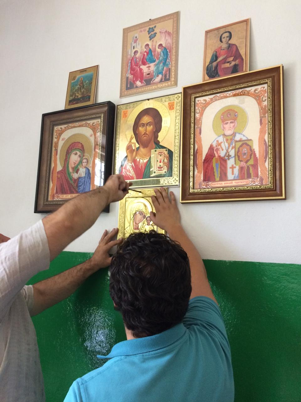Священники Евгений Деревянко и Сергий Куцов вместе с прихожанами кафедрального собора своими силами отремонтировали и обустроили выделенное помещение. А работы там было много: побелить стены, покрасить панели, помыть окна. Нужно было развесить иконы и освятить помещение. Многие прихожане кафедрального собора оказали посильную материальную помощь для завершения ремонтных работ.